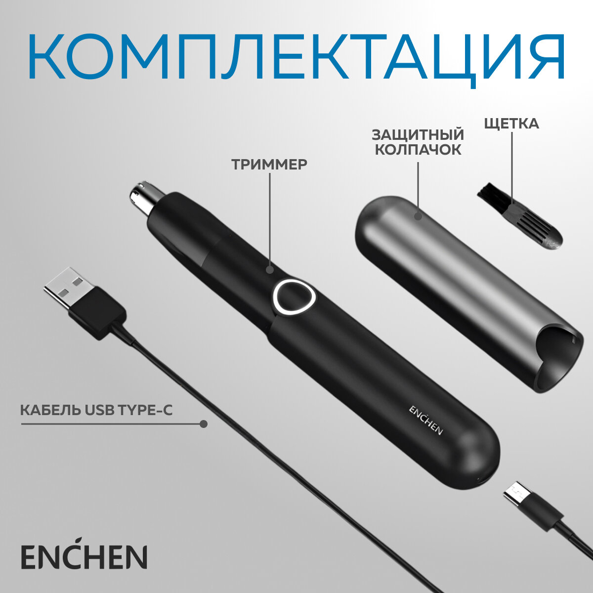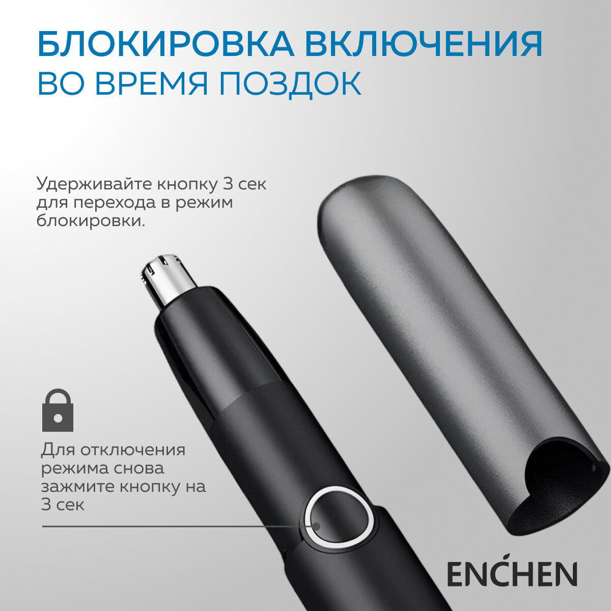 Купить Триммер для носа и ушей Enchen Mocha N с влагозащитой, со встроенным аккумулятором, черный, компактный, легкий
