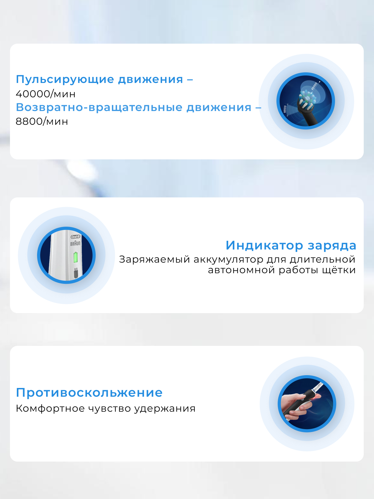 Электрическая зубная щетка Pro 4000 3D Smartseries, 2 сменных насадки, с датчиком давления и индикатором зарядки, синий интересное: