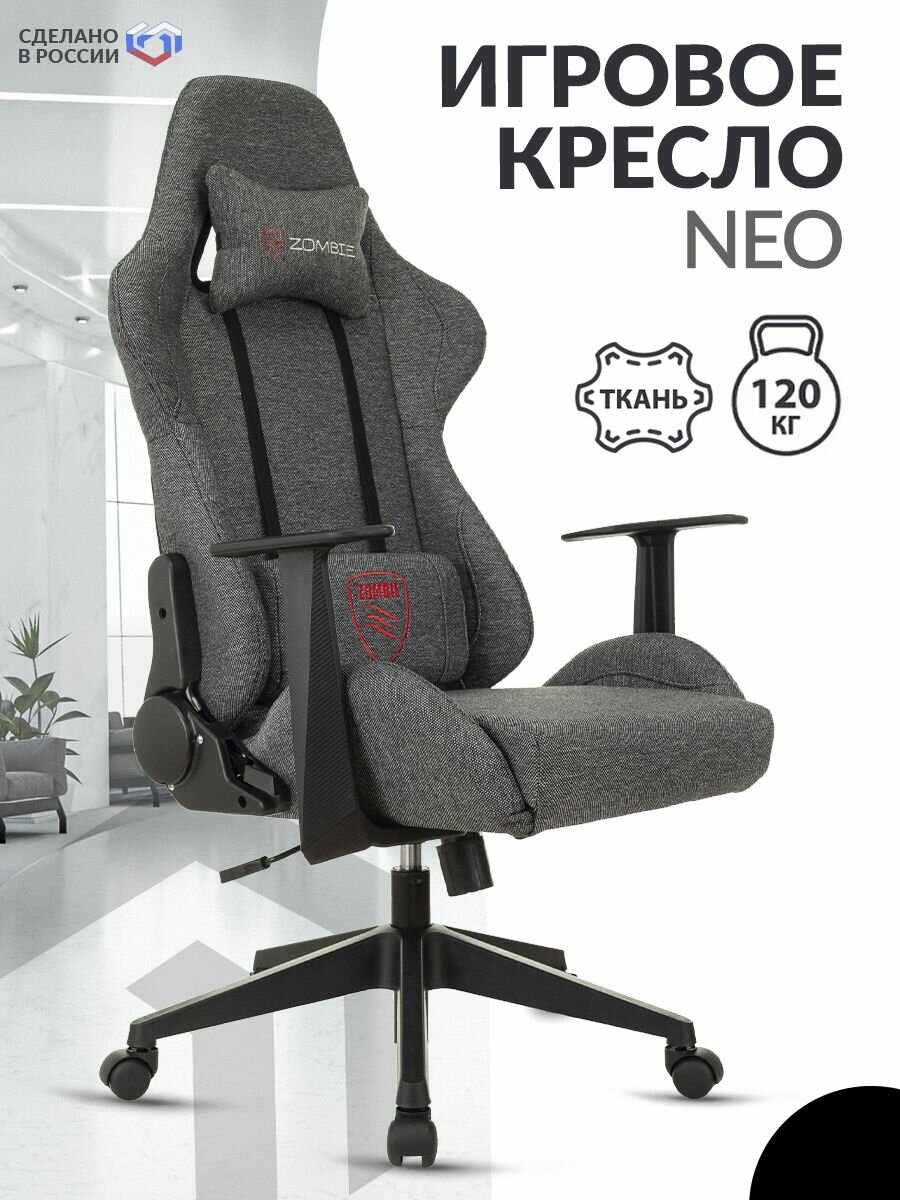 Кресло игровое ZOMBIE Neo ткань, серый, zombie neogrey