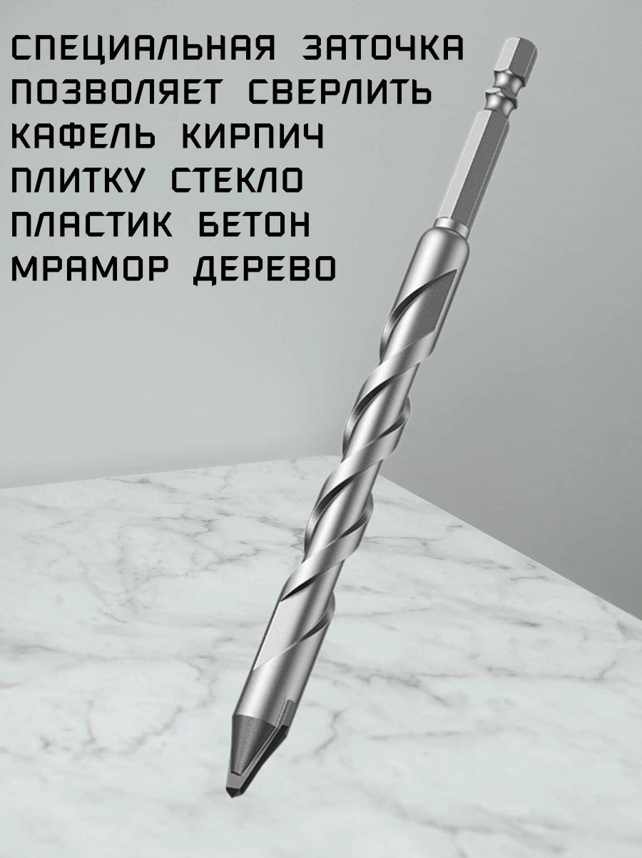 Набор свёрл 5 штук по плитке,по металлу,по бетону,по стеклу,4мм/5мм/6мм/8мм/10мм/ крестовой наконечник