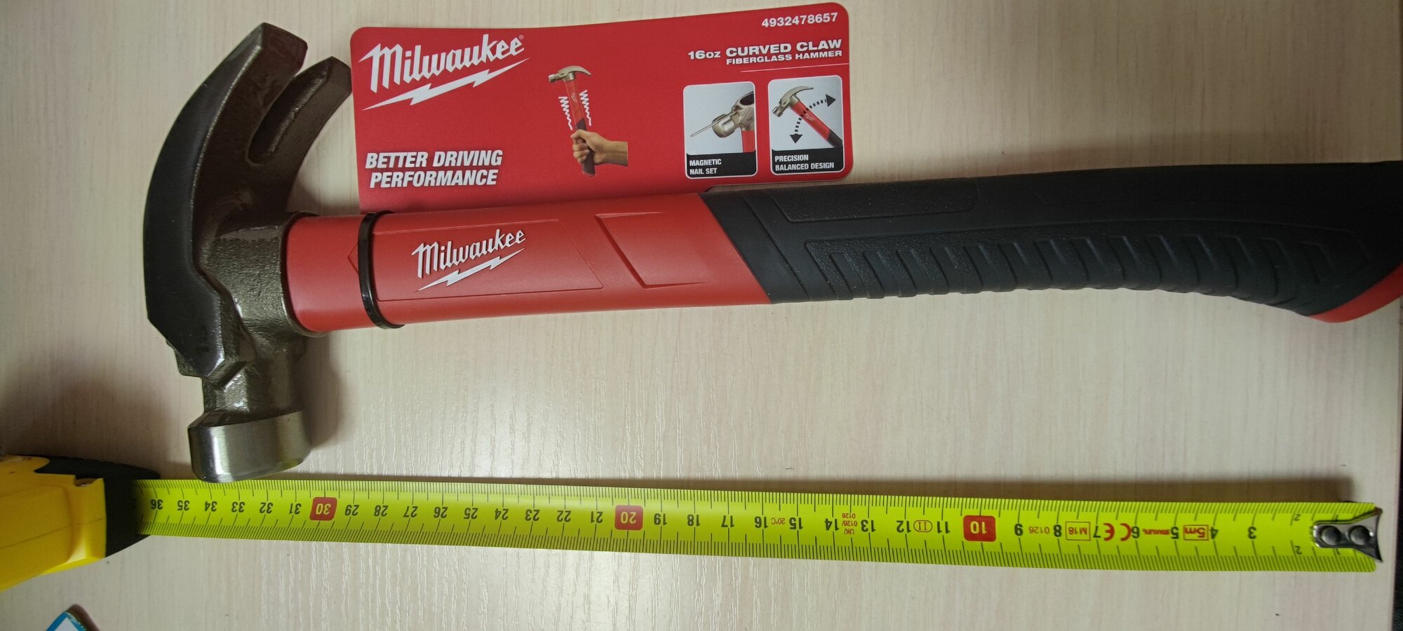 Молоток Milwaukee с рукояткой из стекловолокна, 16 унций, 450 г 4932478657