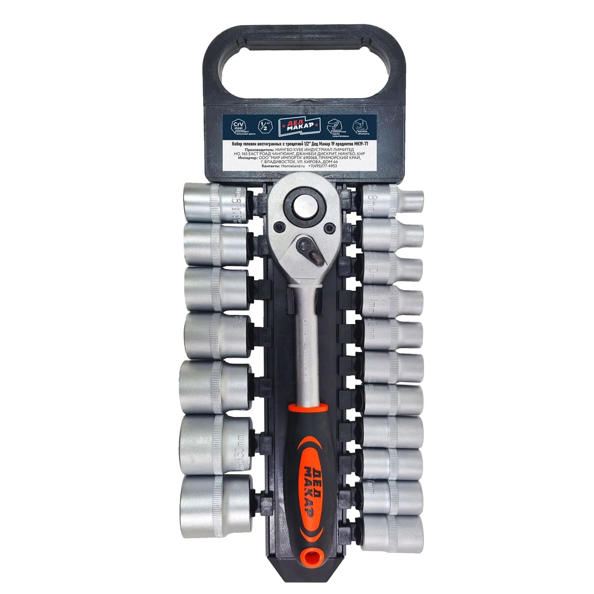 Набор головок шестигранных с трещоткой 1/2" Дед Макар МК19-77, 19 предметов.