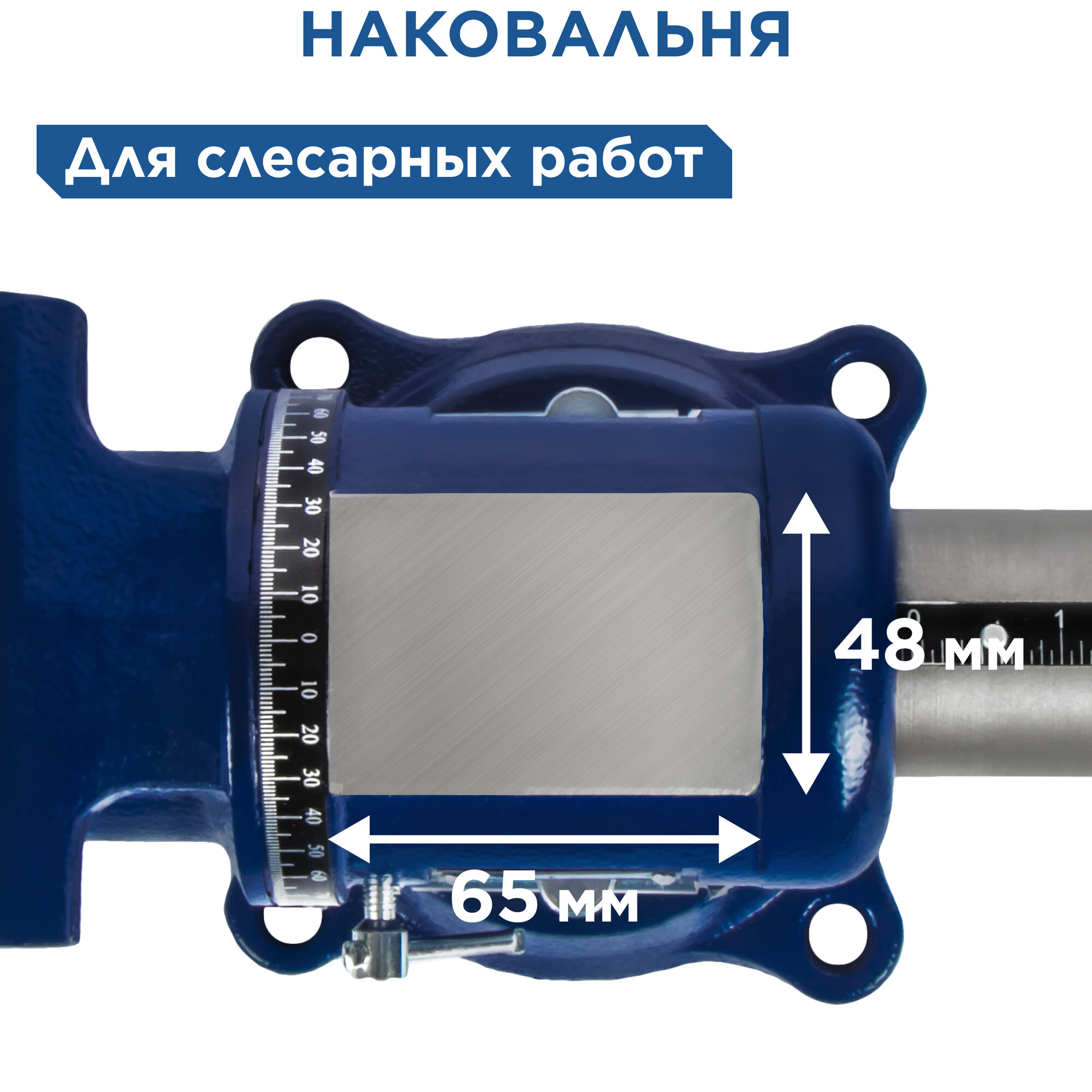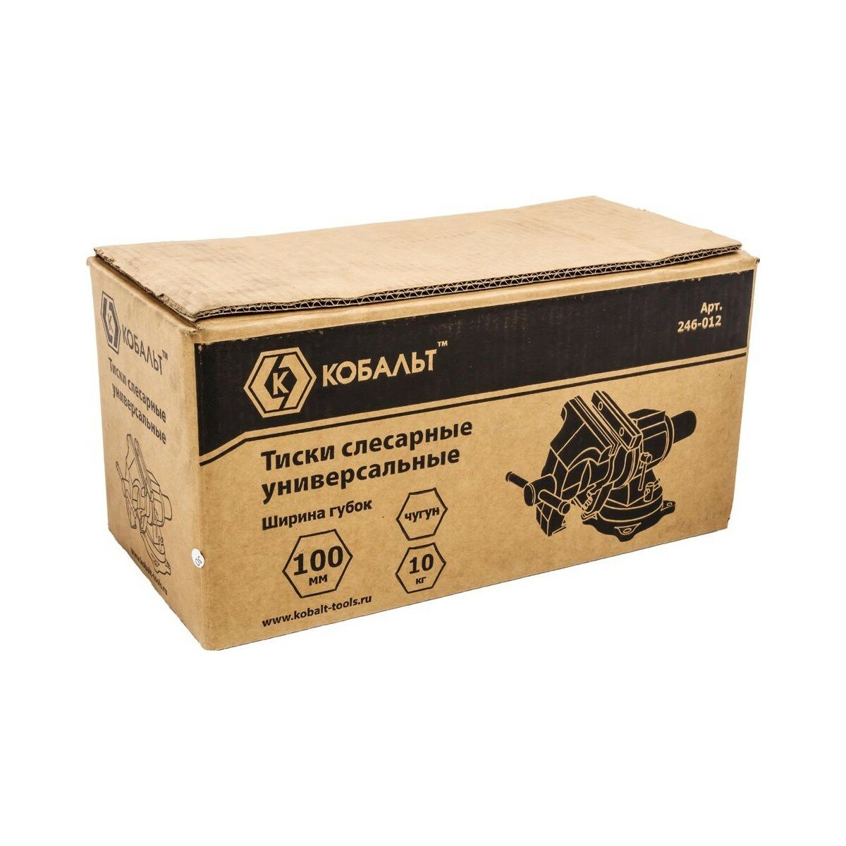 Тиски слесарные кобальт поворотные, ширина губок 100 мм, 10 кг, наковальня, с поворотом в двух плоскостях, коробка