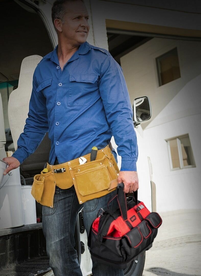 Сумка-пояс для инструментов универсальная строительная 28 карманов с держателем для молотка и рулетки