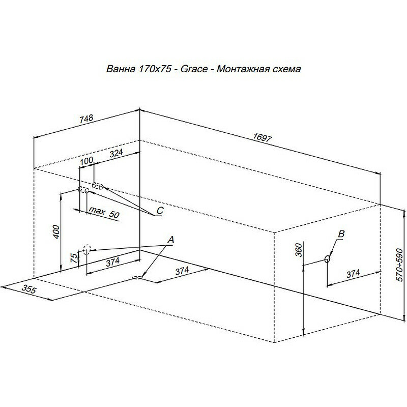 Купить Акриловая ванна Aquanet Grace 170х75 на каркасе