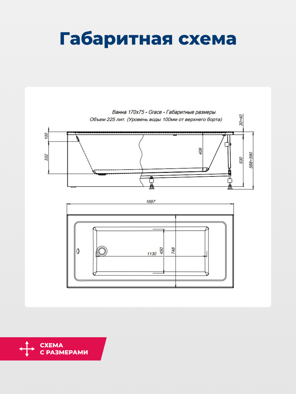 | Особенностий | ножки/каркас в комплекте, противоскользящее покрытие дна, установка на каркас |
