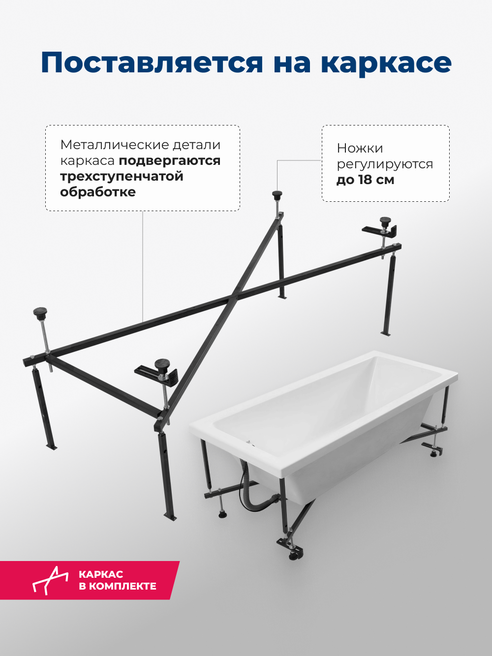 | Подробная комплектация | ванна, каркас |