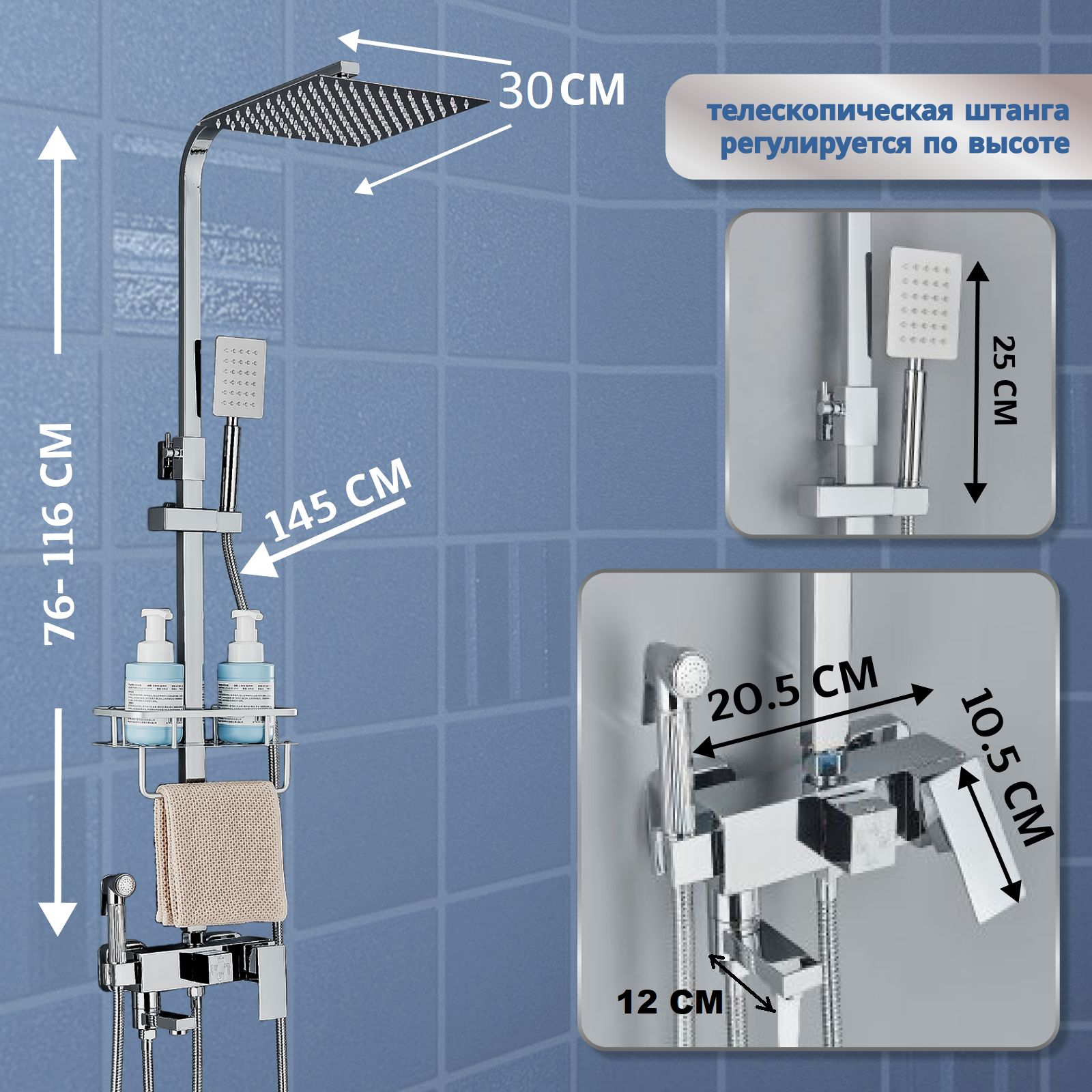 | Форма верхнего душа | квадратная |