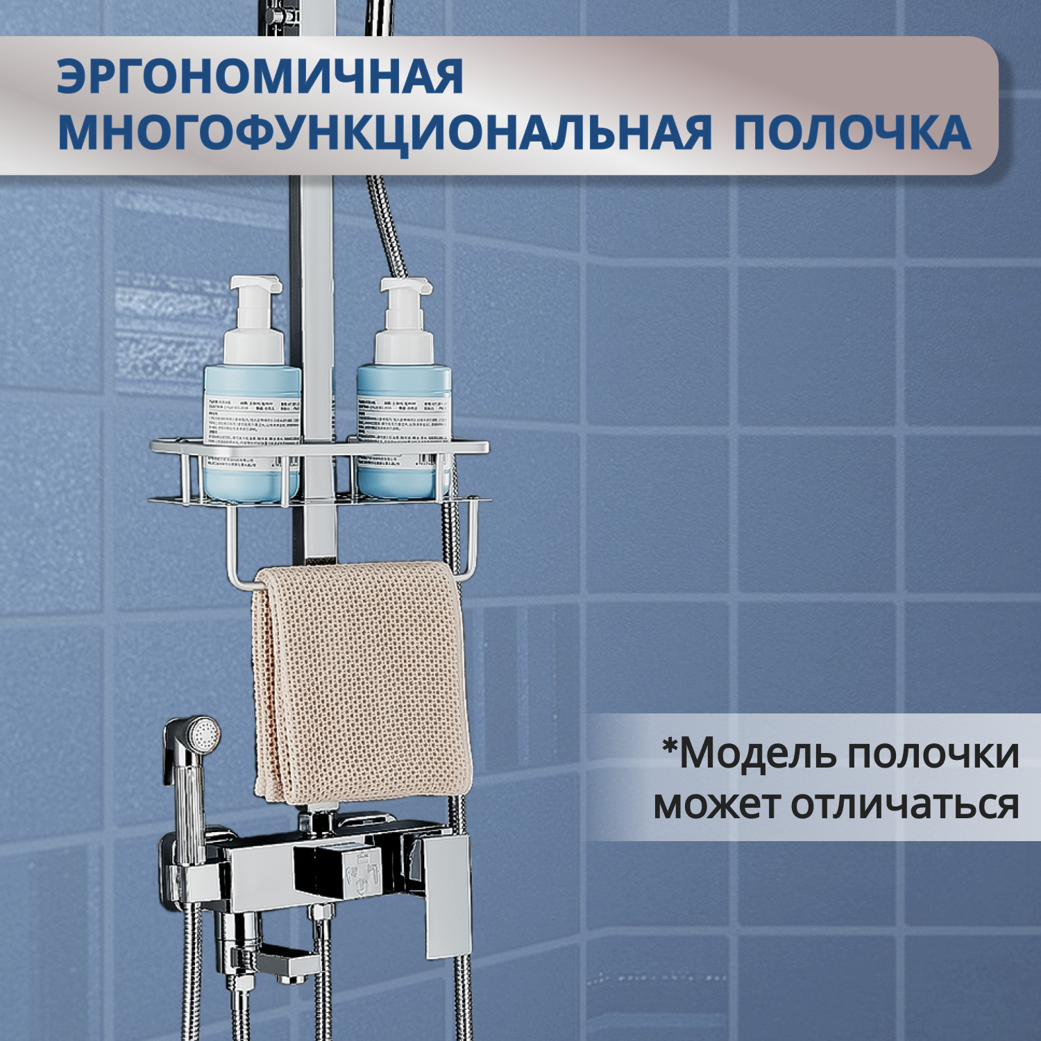 | Комплектация | верхний душ / гигиенический душ / держатель лейки / душевая стойка / душевая штанга / излив для набора воды / кронштейн / кронштейн для верхнего душа / лейка / переключатель потоков / полочка / ручной душ / Смеситель / шланг |