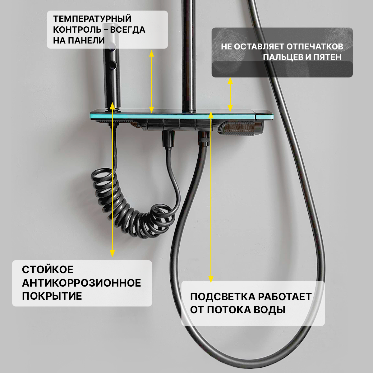 Душевая система 4в1 с тропическим душем и подсветкой черная