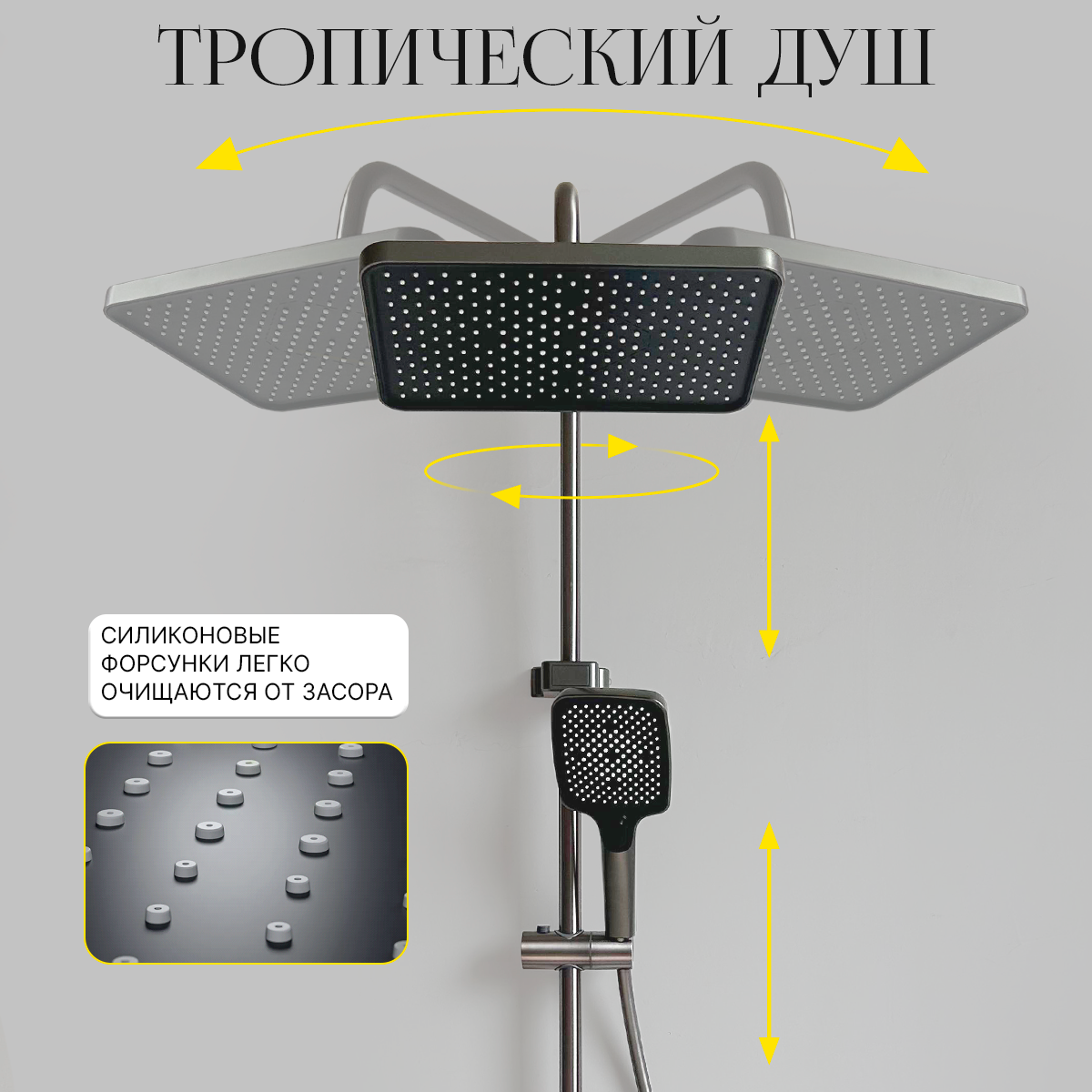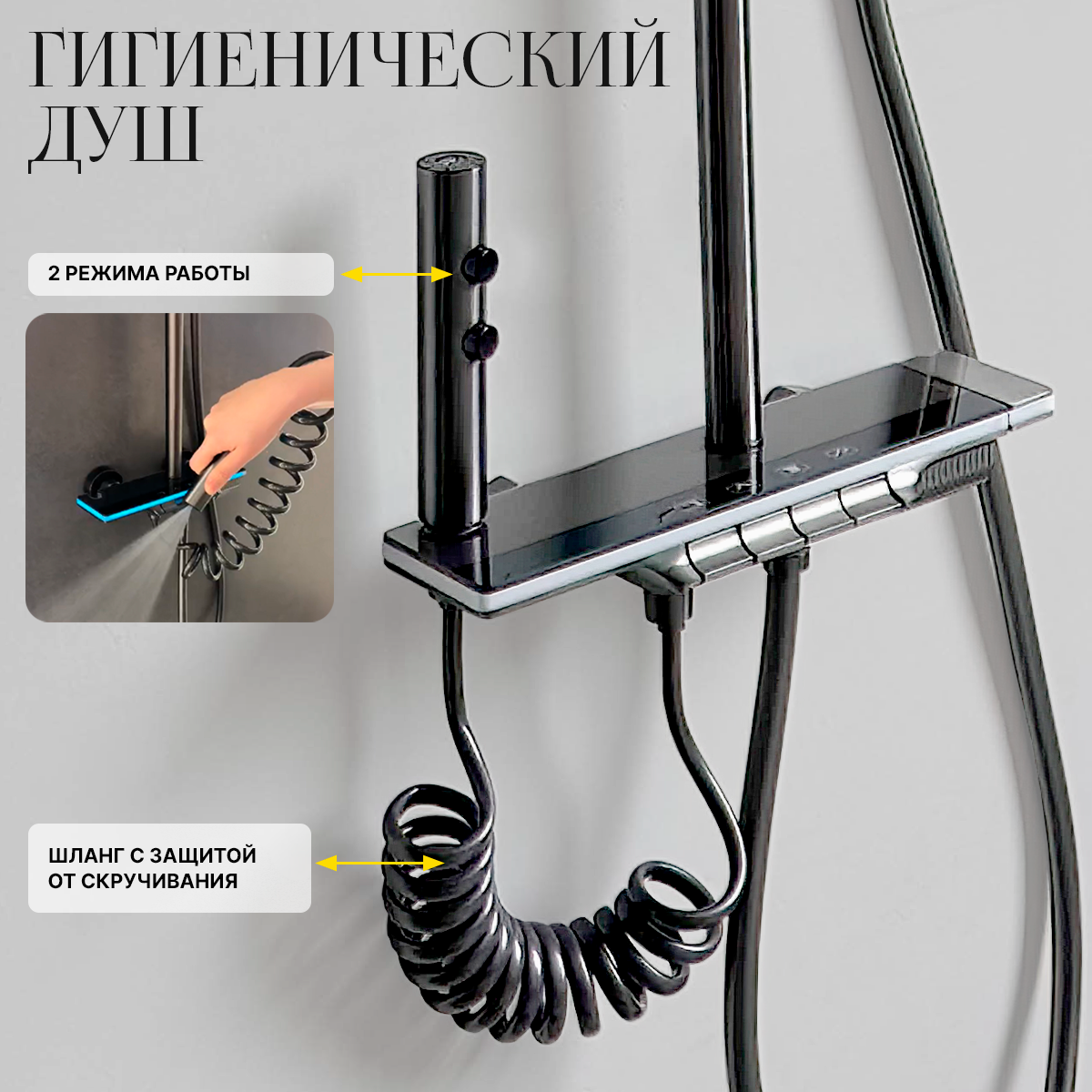 Душевой комплект с тропическим душем, гигиеническим душем и подсветкой