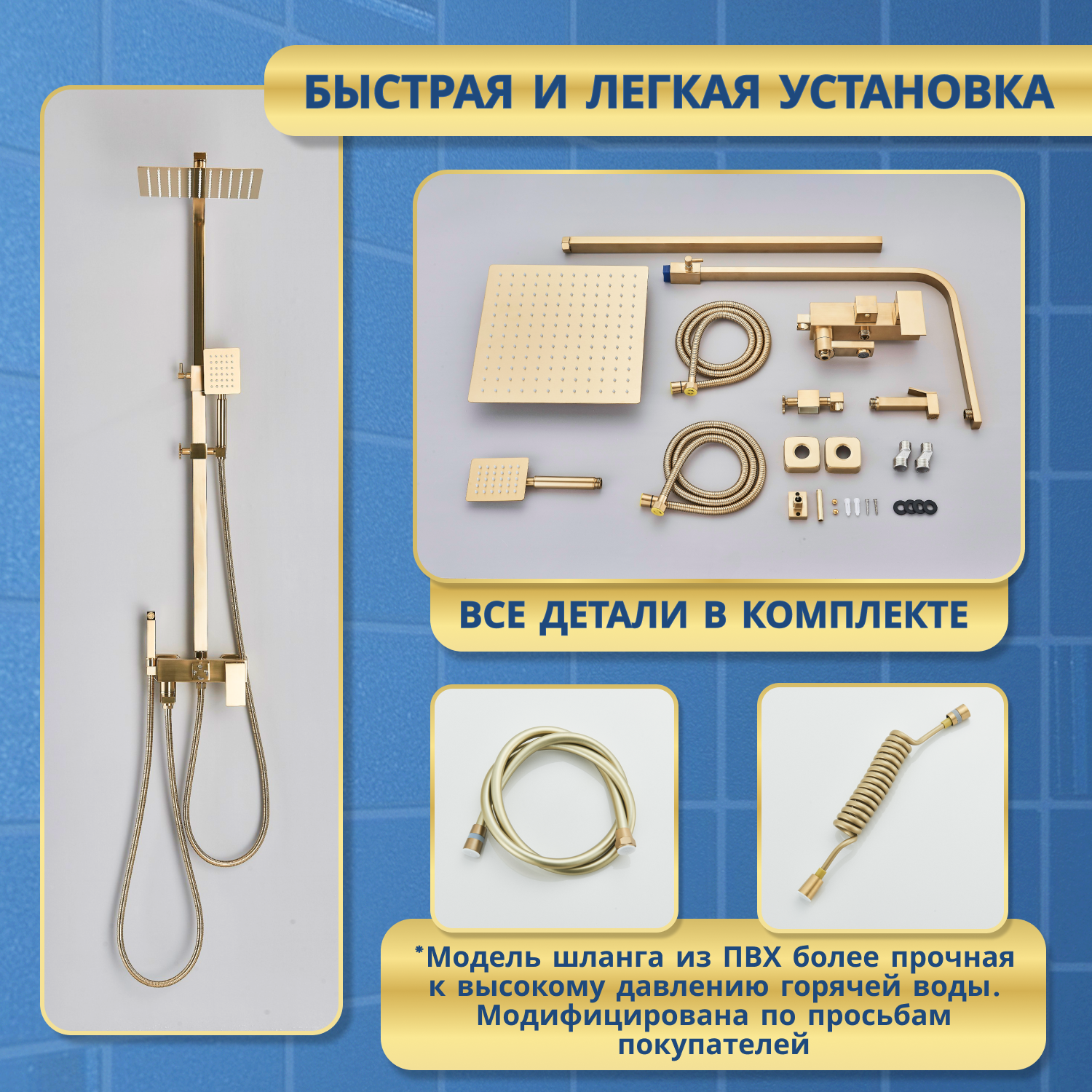 Душевой комплект с тропическим душем, гигиеническим душем, душевая стойка (система) со смесителем, душевой гарнитур золото бронза