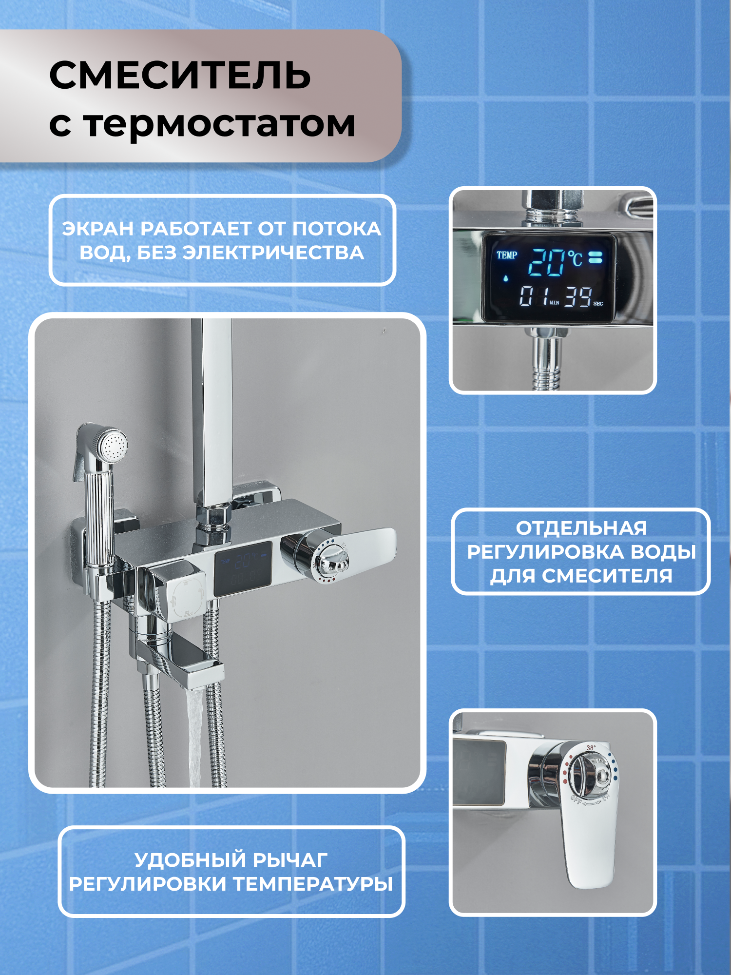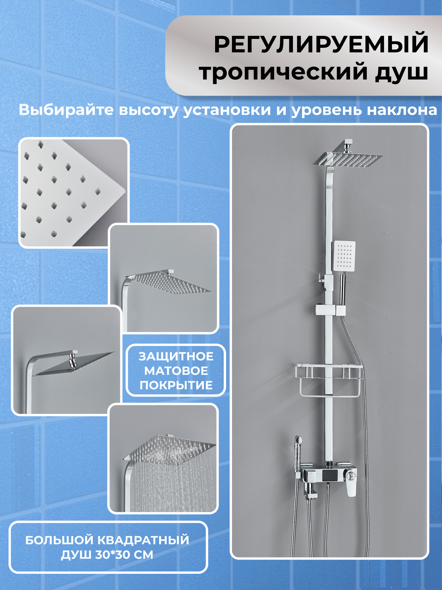 Душевая система DHome с тропическим душем и термостатом, цвет хром, 25 см интересное: