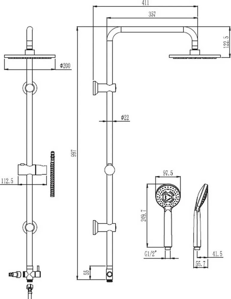| Дополнительная информация | высота стойки для душа: 997 мм; диаметр верхнего душа: 200 мм |