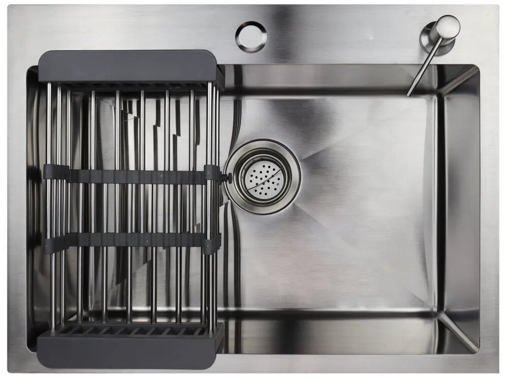Мойка SIRIUSLINE Premium 60х45 из нержавеющей стали Графит SL6045G (в комплекте с коландером, врезным дозатором, и сифоном) толщина стали 3 мм