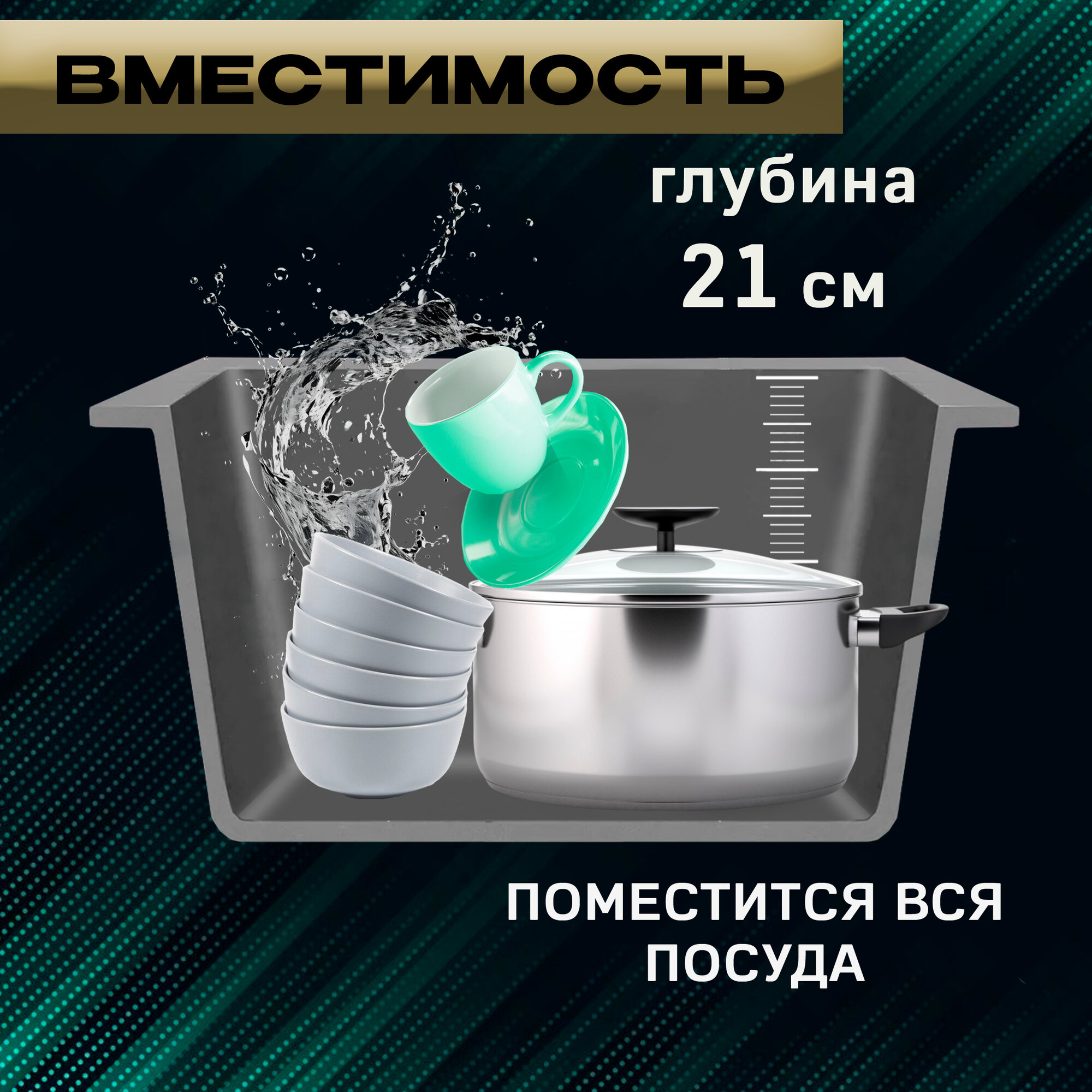 Мойка SIRIUSLINE Premium 60х45 из нержавеющей стали Графит SL6045G (в комплекте с коландером, врезным дозатором, и сифоном) толщина стали 3 мм
