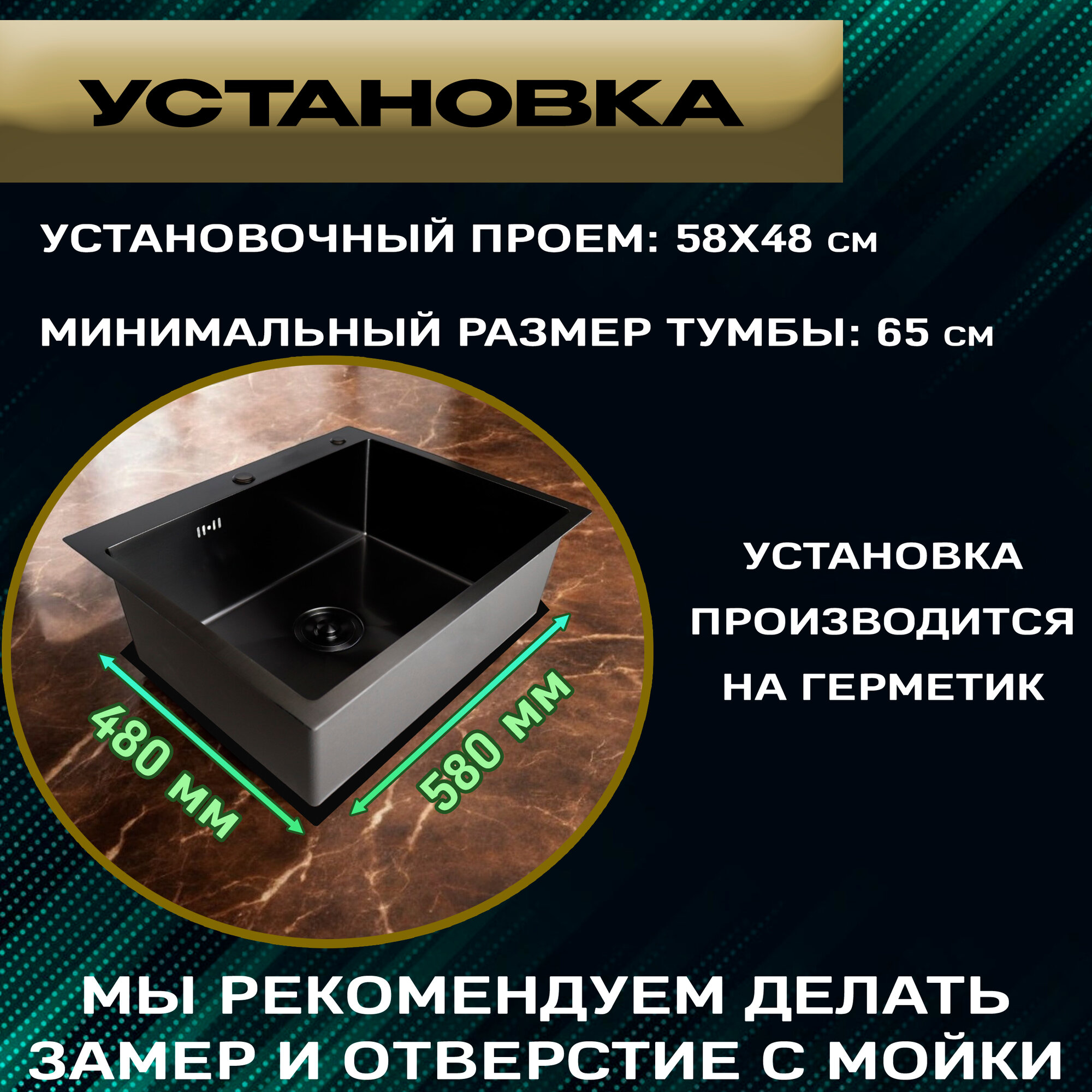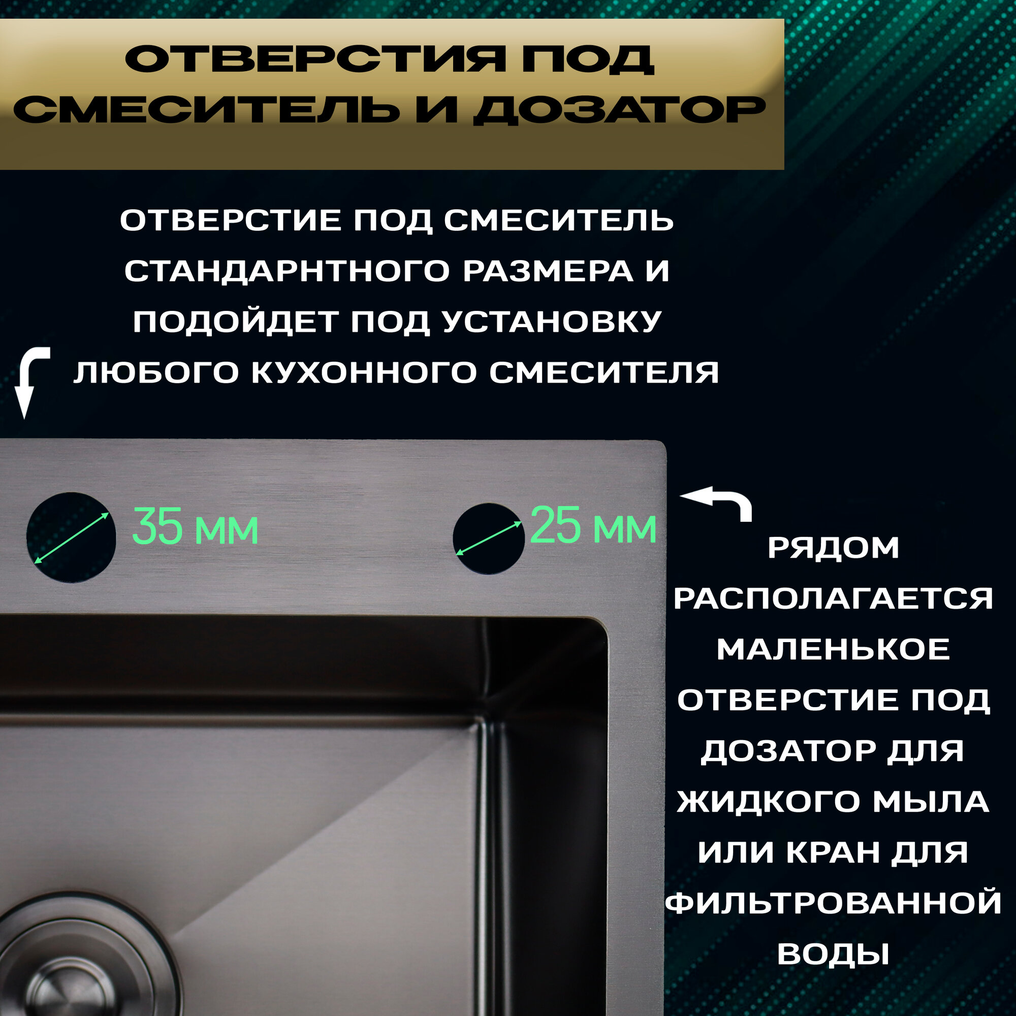 Мойка VERMON из нержавеющей стали М304 Черный 50х45 (в комплекте с коллайдером, врезным дозатором, и сифоном) толщина стали 3 мм