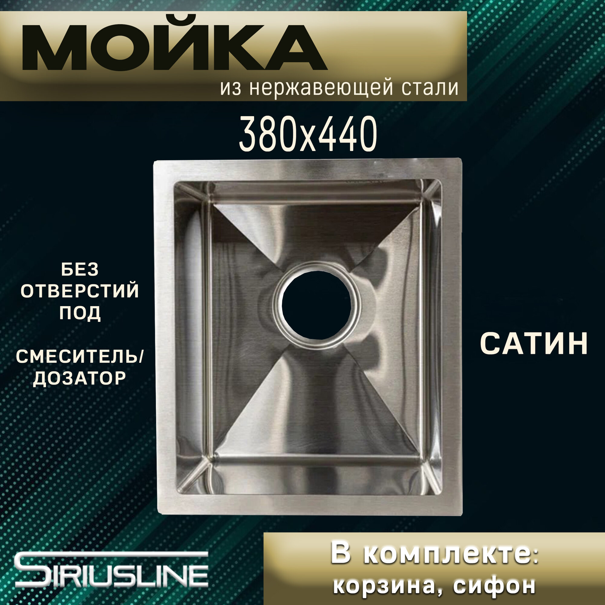 Купить Мойка SIRIUSLINE Premium 38х44 из нержавеющей стали Сатин SL3844 (в комплекте с коландером и сифоном) толщина стали 3 мм