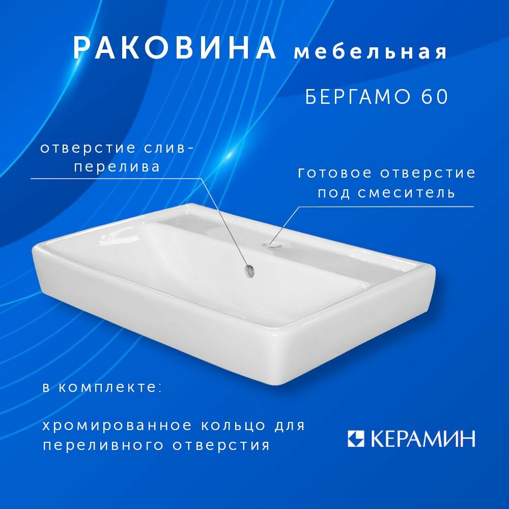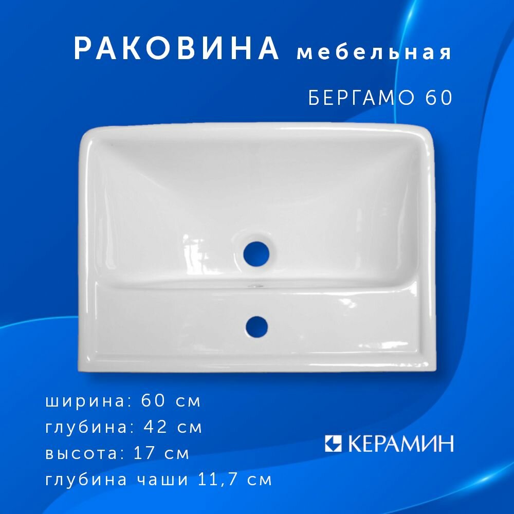 Раковина Keramin Бергамо 60 см встраиваемая белая (006299)