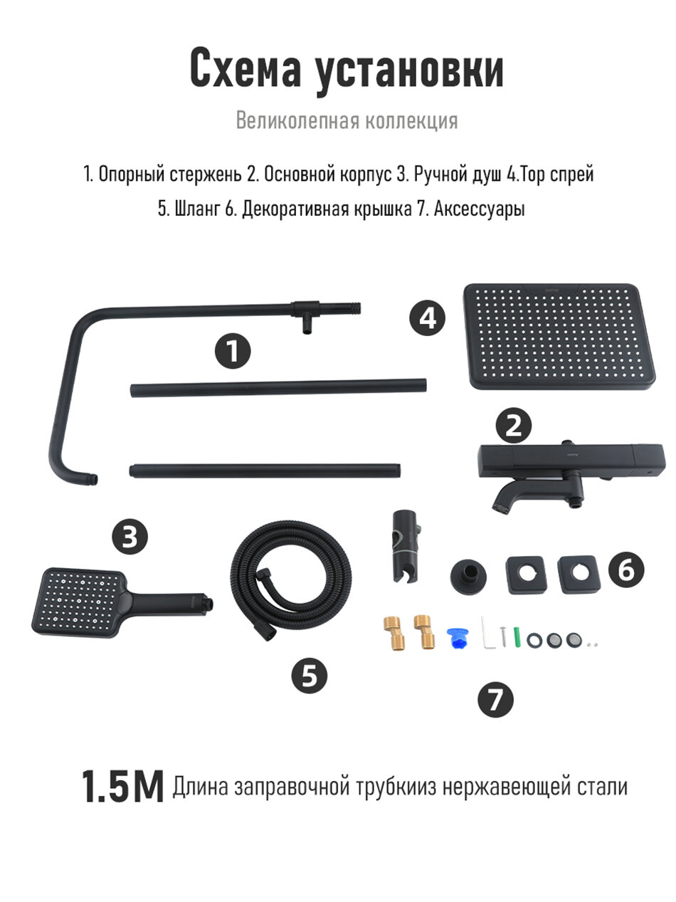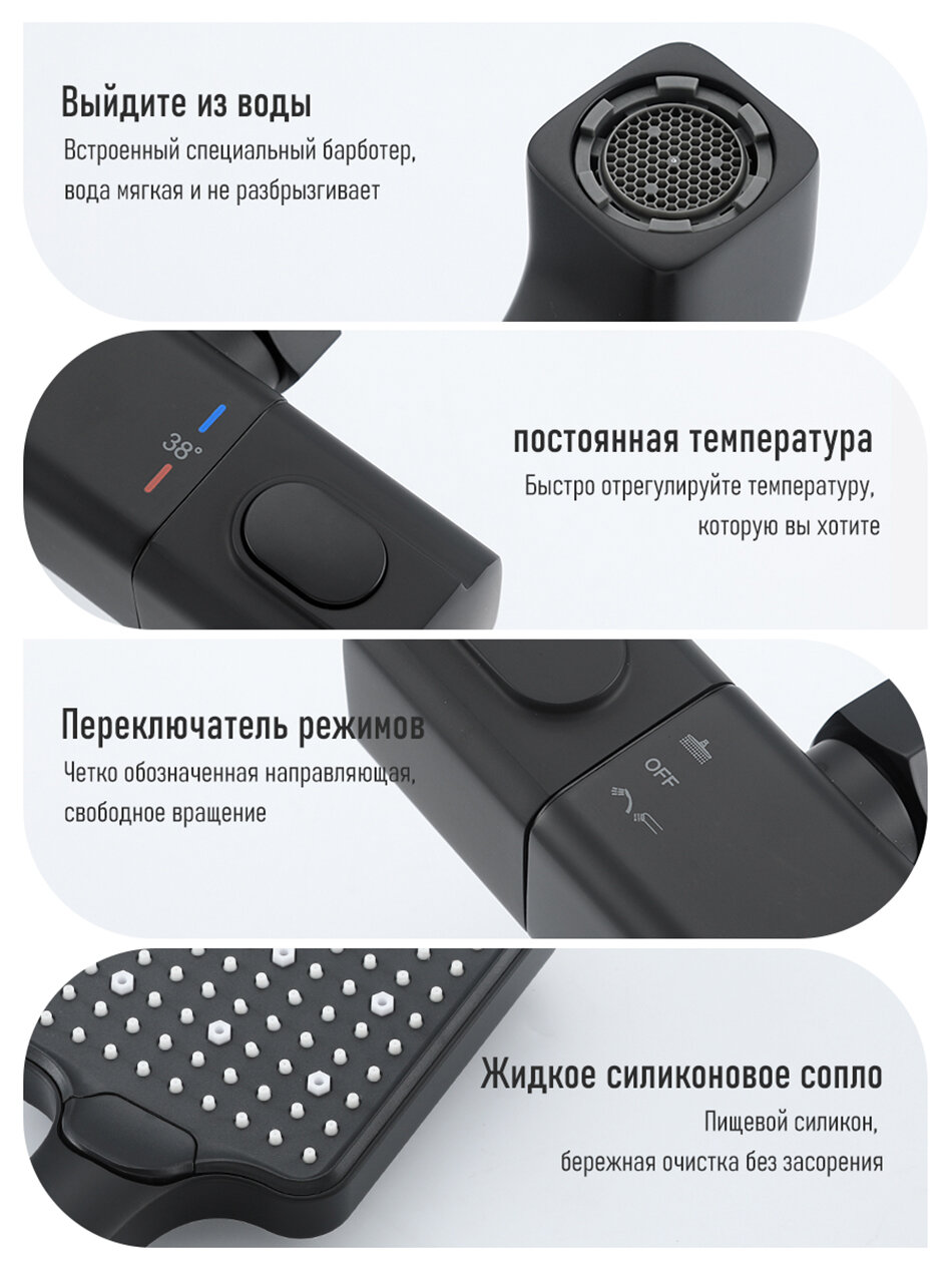 Термостатический смеситель GAPPO G24660-6 для душа, вертикальный монтаж, черный интересное: