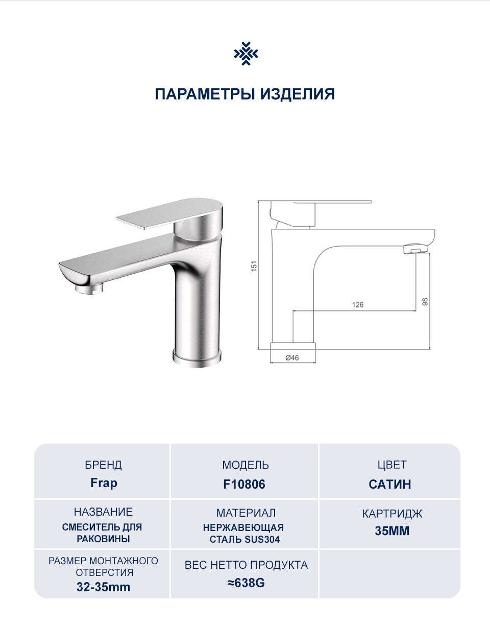 Смеситель для раковины FRAP F10806 из нержавеющей стали