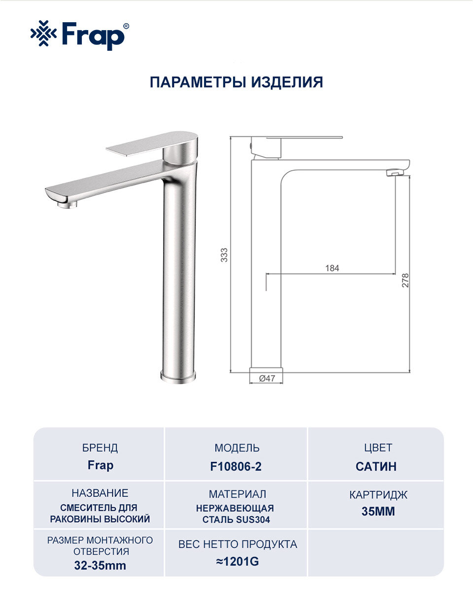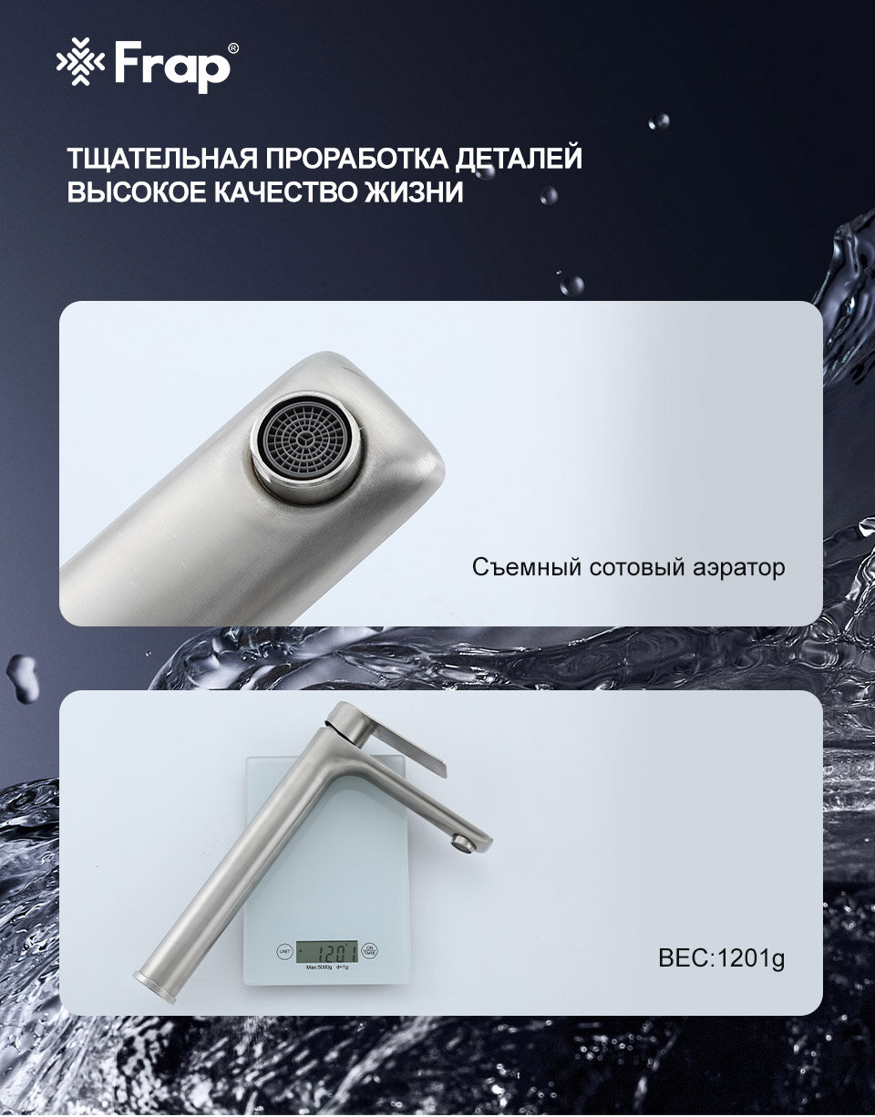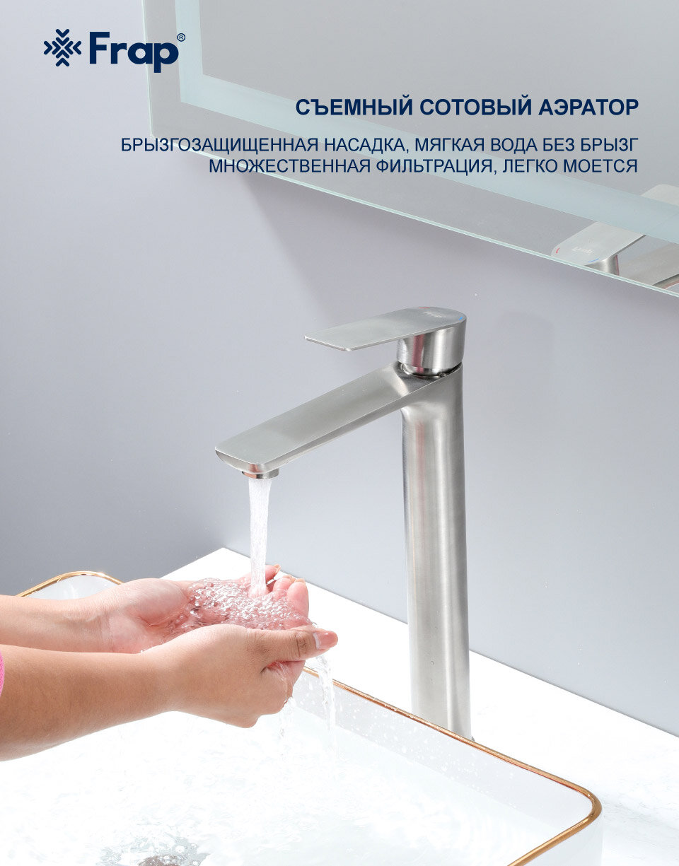 Смеситель для раковины Frap F10806-2 высокий, сатин