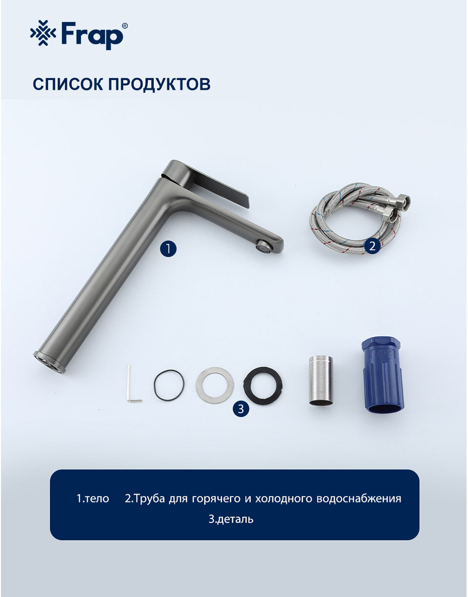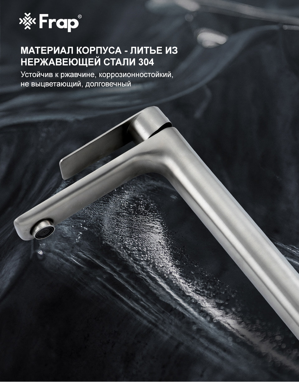 Смеситель для раковины Frap F10806-29 высокий, оружейная сталь