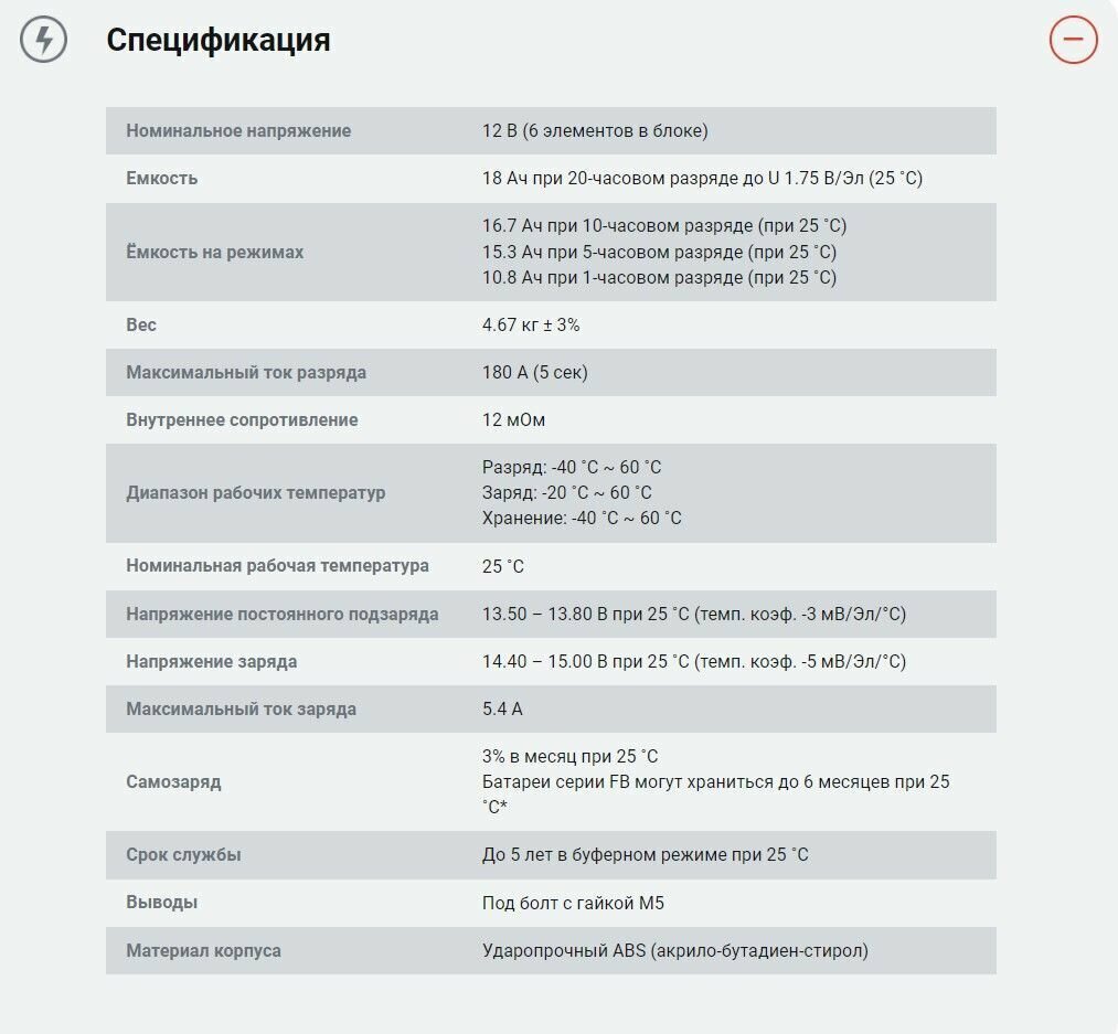 СохранитьАккумулятор ALFA FB 18-12 12В 18Ач (12V 18Ah) технологии AGM для ИБП и UPS интересное: