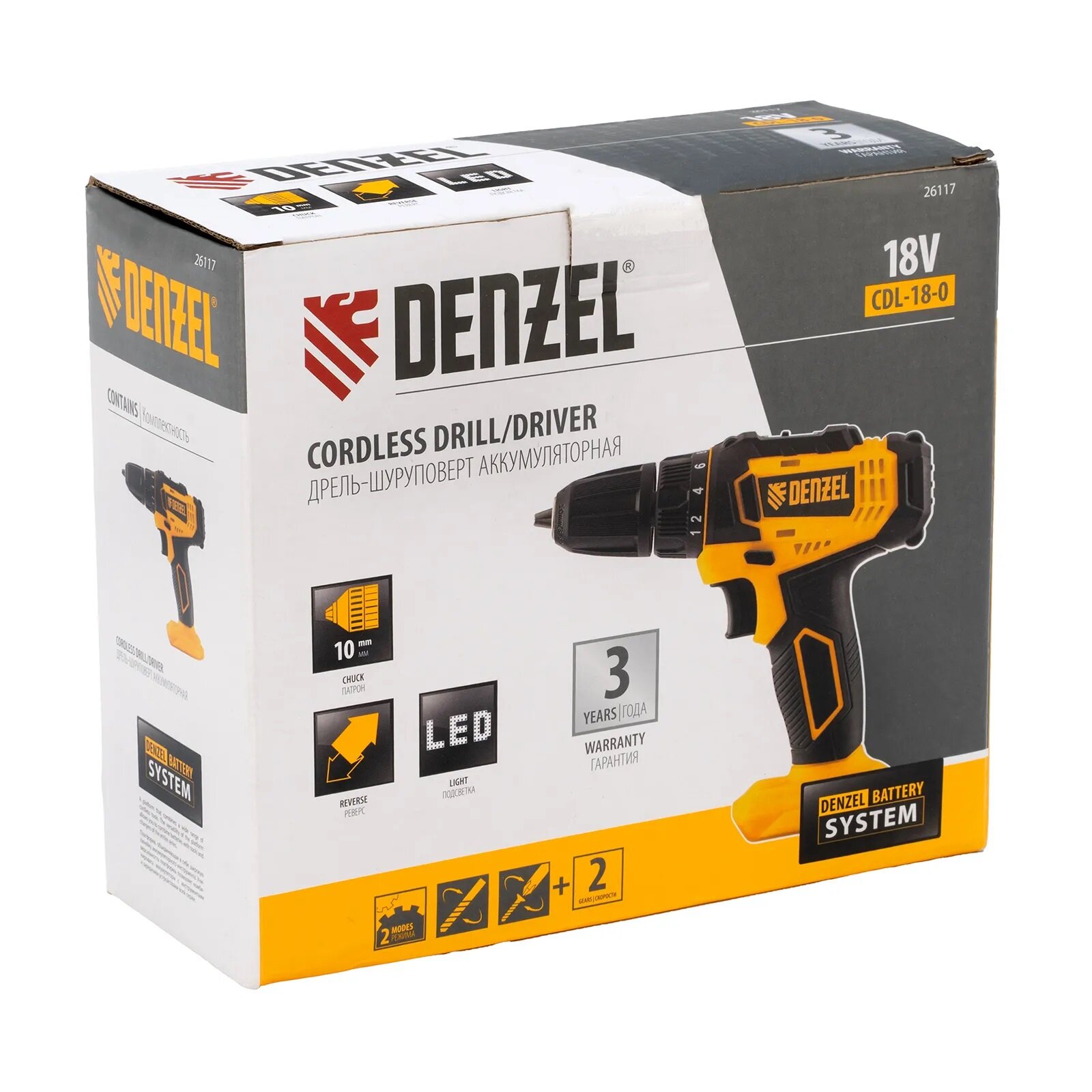 Купить Дрель-шуруповерт DENZEL CDL-18-0, без АКБ, без ЗУ [26117]