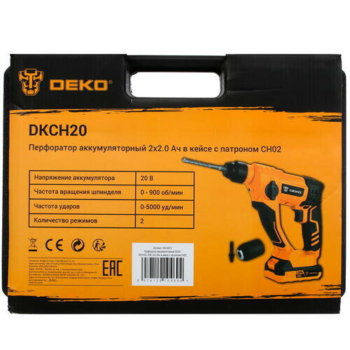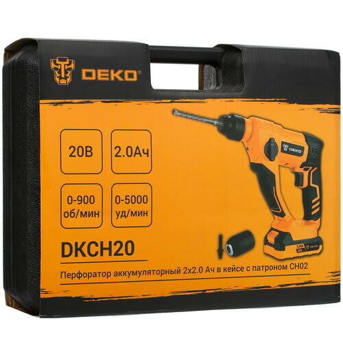 Аккумуляторный перфоратор Deko DKCH20, 20В, 2x2.0Ач в кейсе с патроном CH02 063-4412