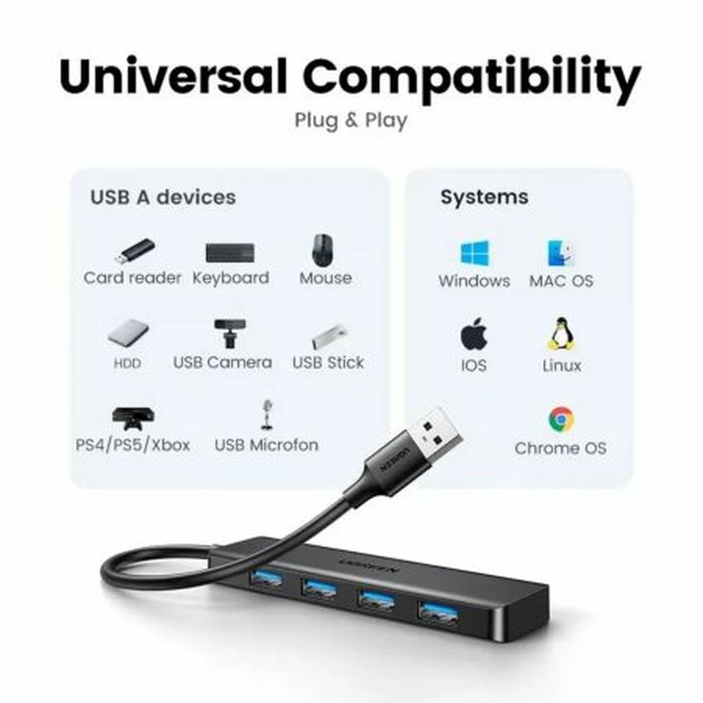 Хаб UGREEN CM219 (25851) 4-Port USB 3.0 Hub. Цвет: черный