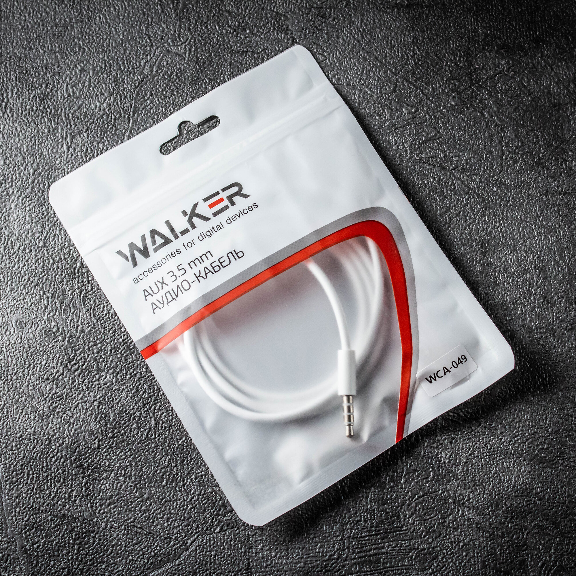 Кабель разъем AUX, WALKER, CA-049, mini jack 3,5 мм, 1 м, акустический провод для samsung в машину, шнур аукс для телефона, наушников, колонки, белый
