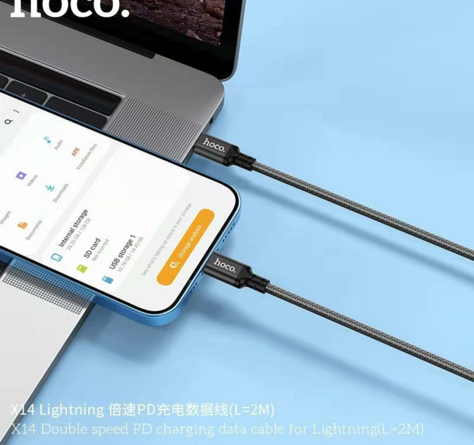 Кабель USB-C HOCO X14 Double speed Type-C - Lightning, 2 м, черный