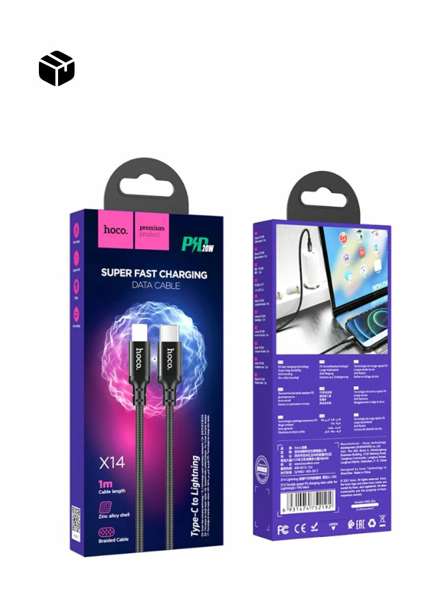 Hoco Кабель Type-C - Lightning, 1м, PD20W, X14 Чёрный