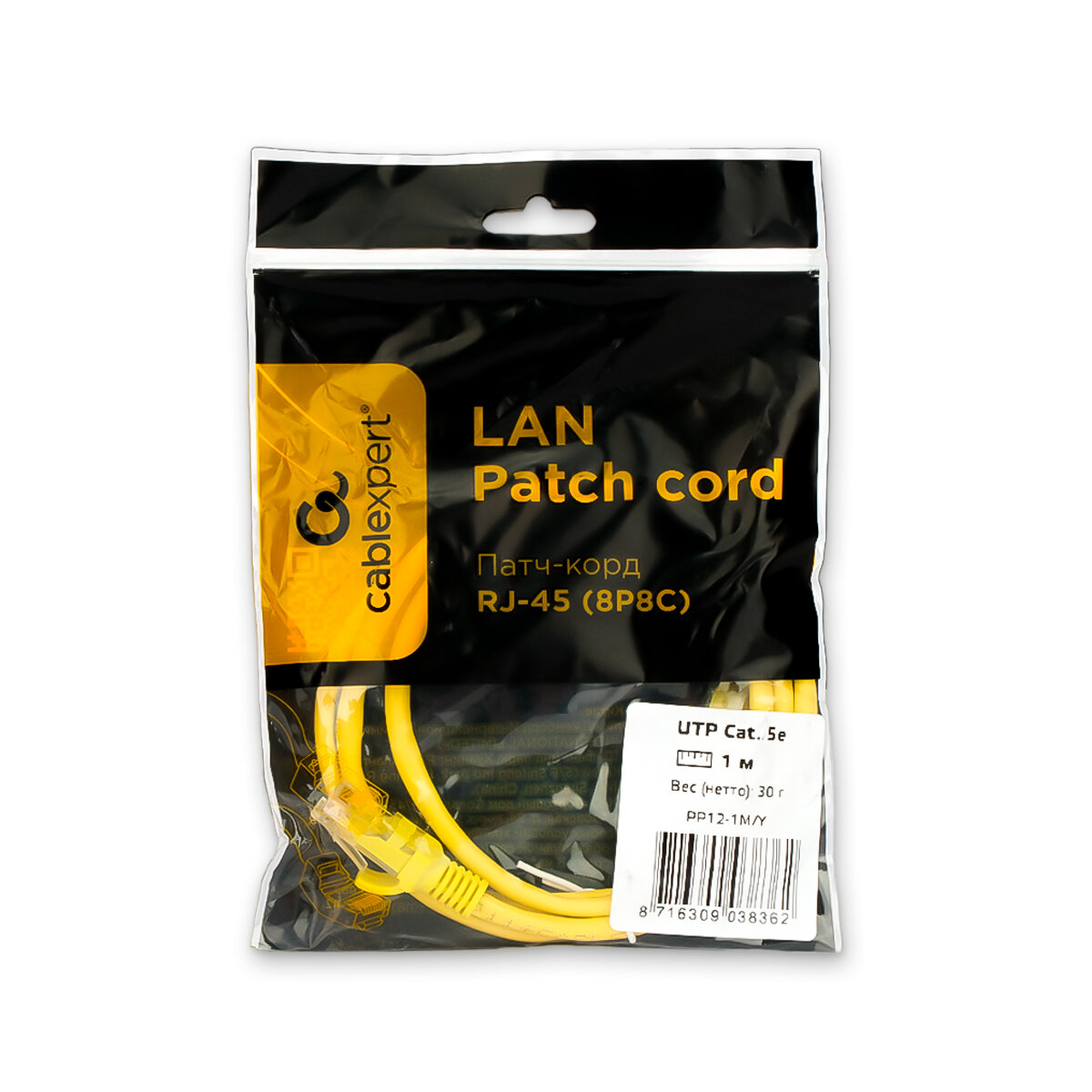 Кабель UTP 5E Gembird, 1 м., желтый (PP12-1M/Y)