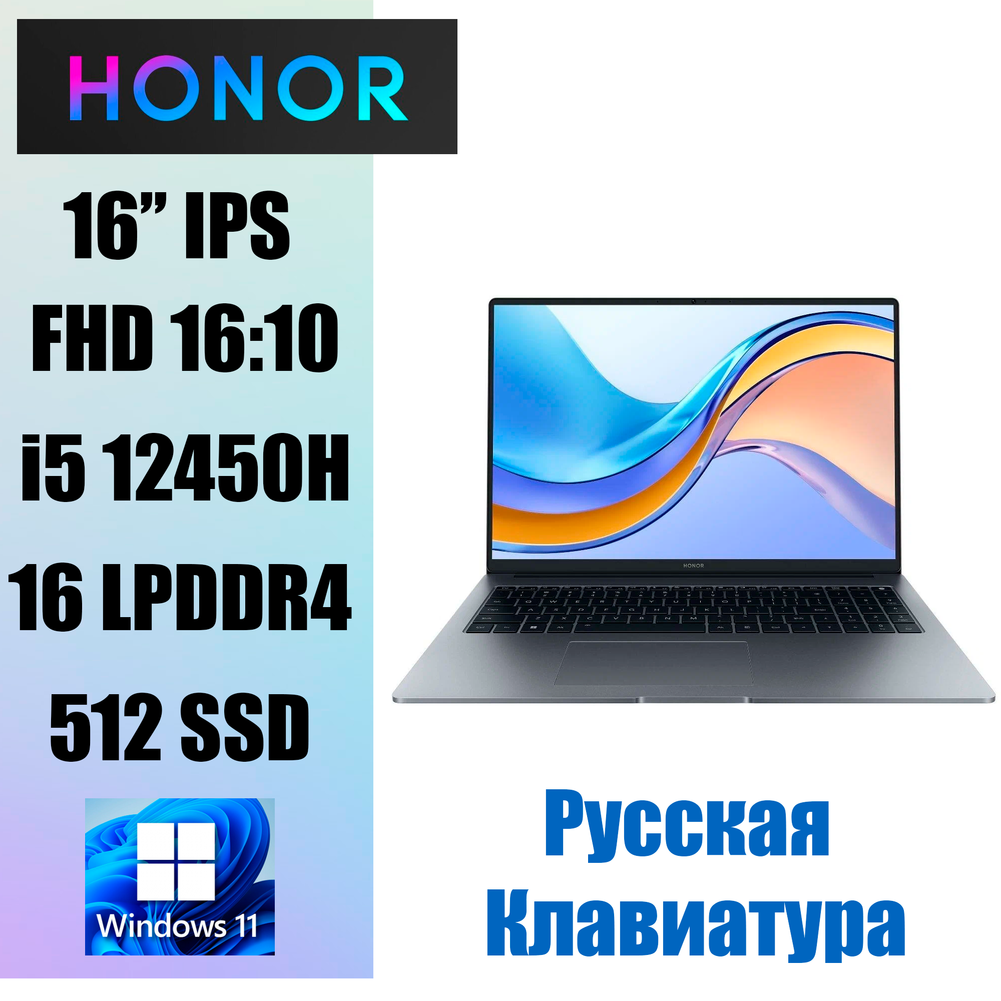 | Дополнительная информация | 16" Ноутбук Honor MagicBook X16 Pro (5301AGPH), AMD Ryzen 7 7840HS (3.8 ГГц), RAM 16 ГБ, SSD 512gb, AMD Radeon 780M, Windows 11 Pro, серебристый, Российская клавиатура |