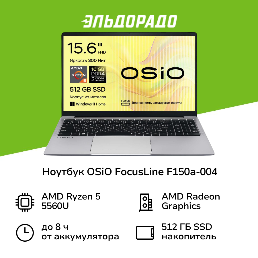 Купить Ноутбук OSiO FocusLine F150a-004/15.6"/AMD Ryzen 5 5560U/16/512/Win/Grey