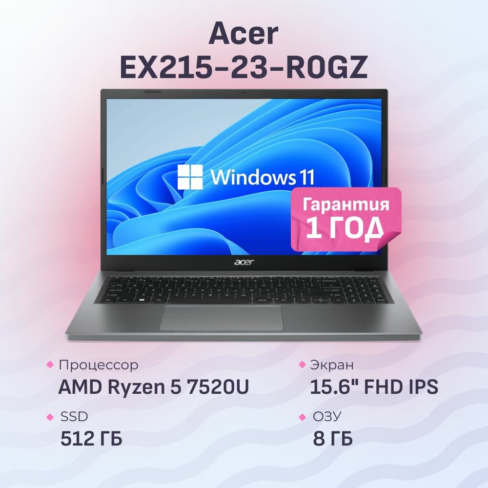 Купить Ноутбук Acer EX215-23-R0GZ черный Ryzen 5 7520U/8ГБ/512ГБ SSD/AMD Graphics/15.6" FHD IPS/W11