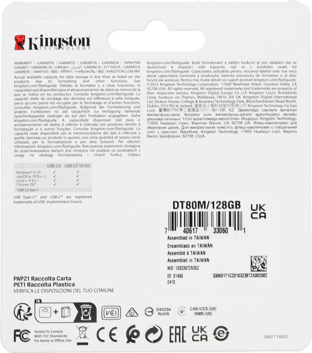 128Gb Kingston Dt80m/128gb USB Type-C 3.2 Gen 1