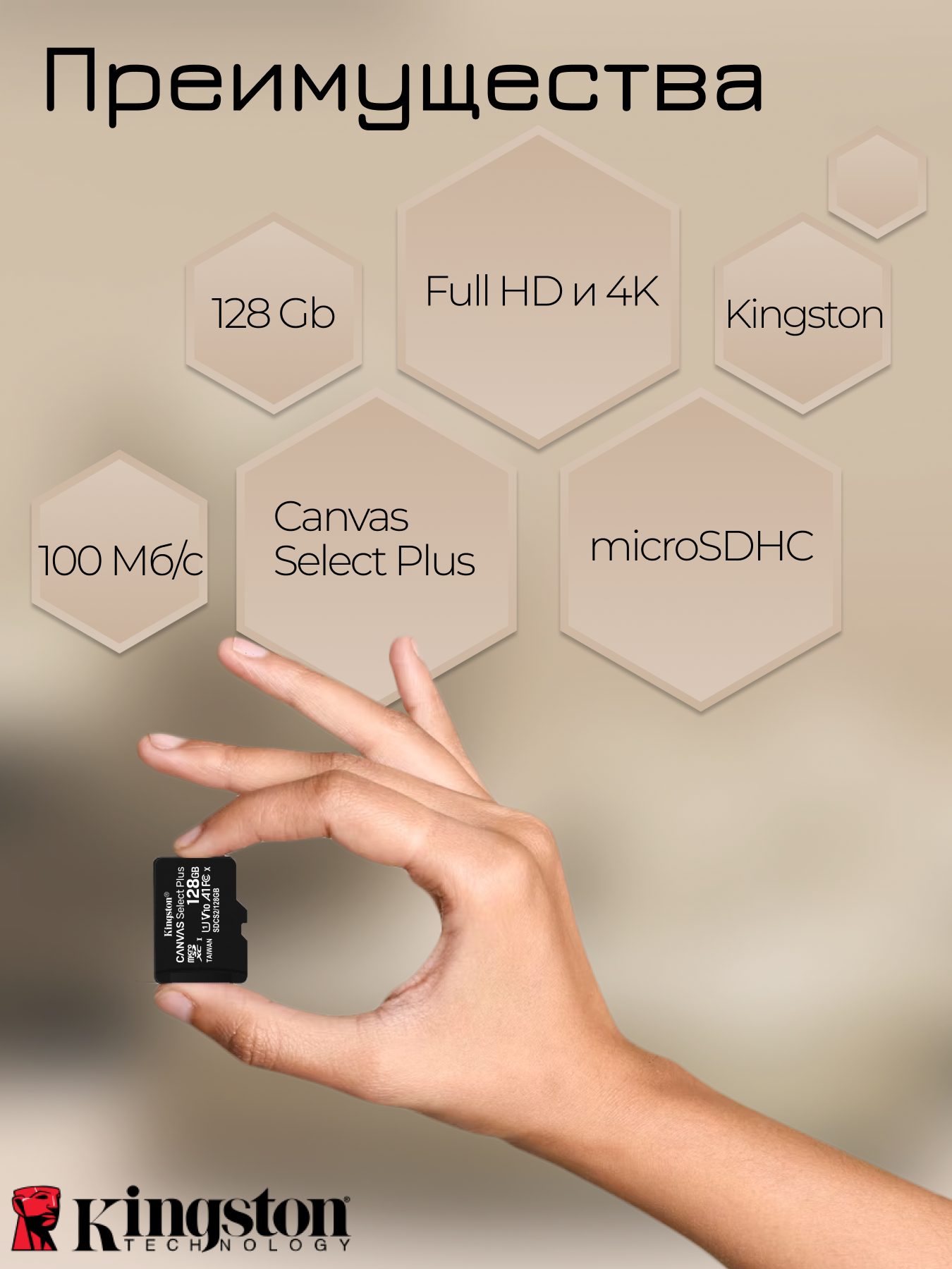 Внешний носитель информации microSDXC Kingston 128Gb Canvas Select Plus, Class10, UHS-I (U1) V10 A1, R100/W85 Mb/s, w/o adapter ( SDCS2/128GBSP ) интересное: