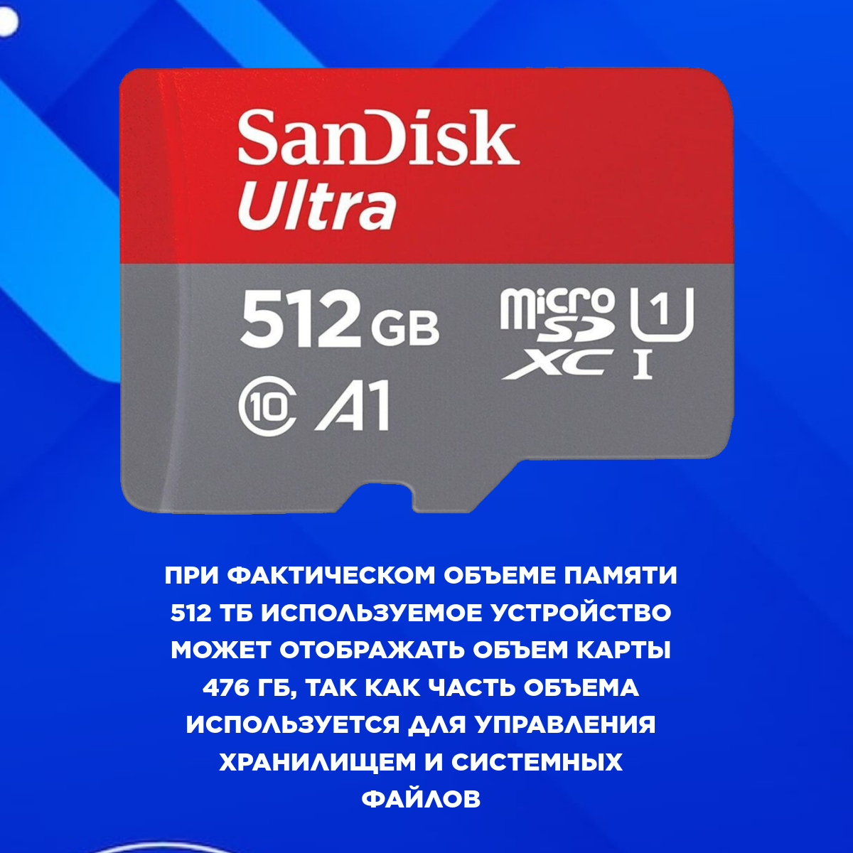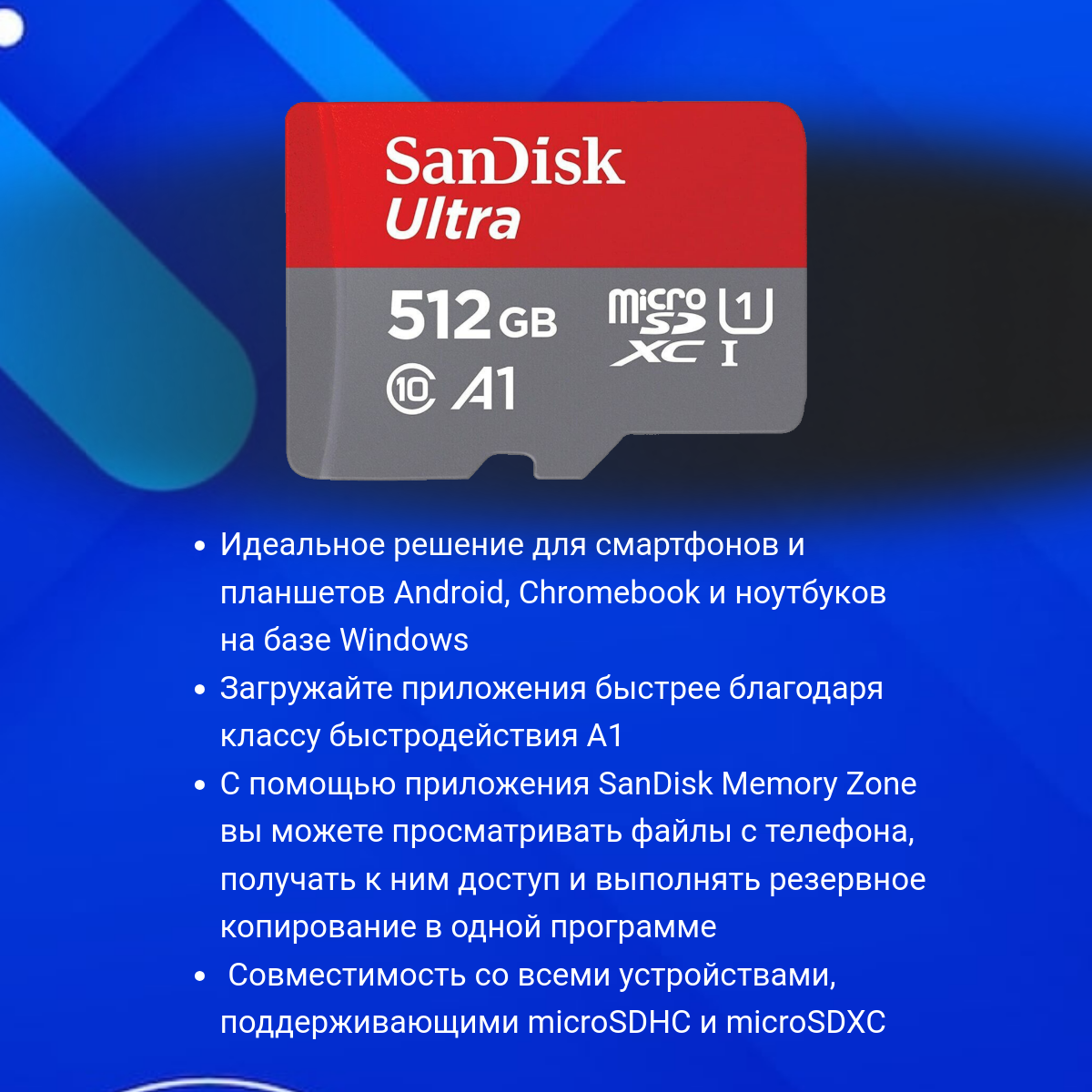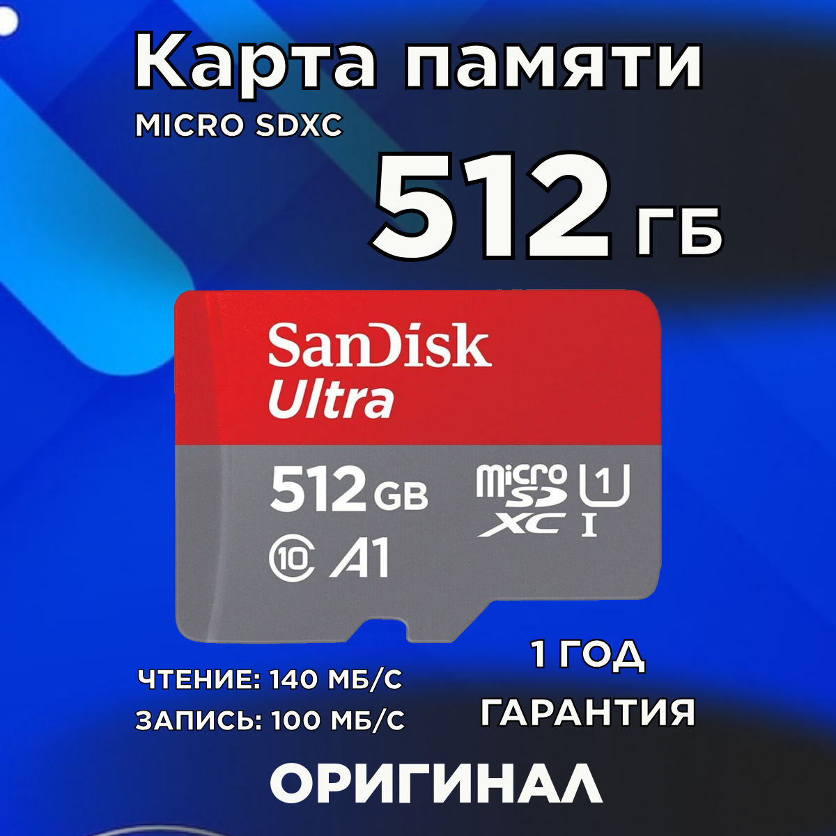 Карта памяти SanDisk microSDXC 512 ГБ Class 10, A1, UHS-I, R 150 МБ