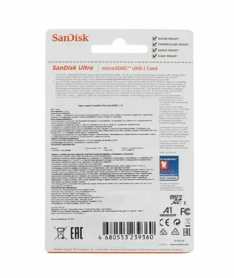 Карта памяти SanDisk microSDXC 256 ГБ Ultra Class 10, UHS-I, U1, A1 (150 Mb/s)