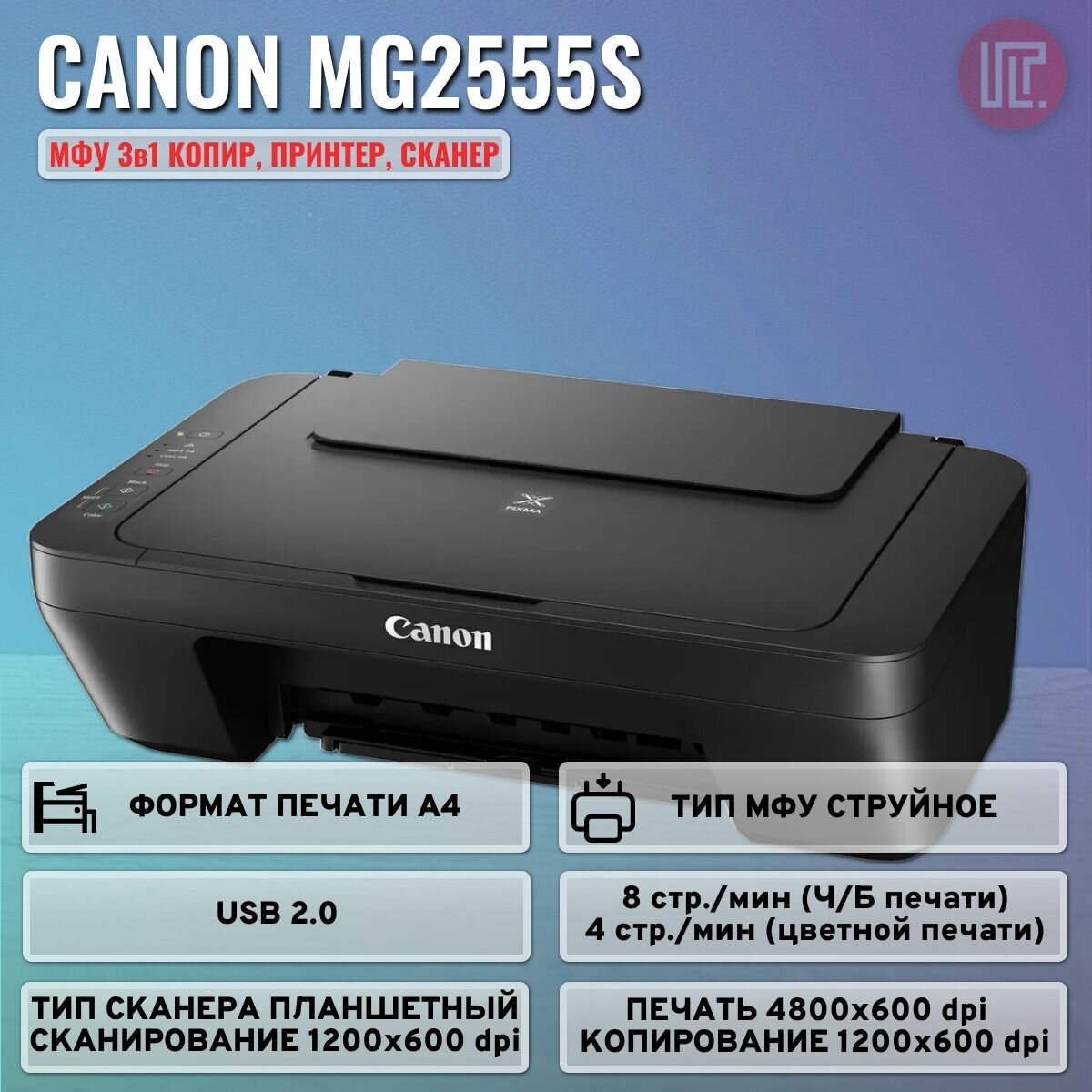 МФУ струйный Canon Pixma MG2555S, цветная печать , A4, USB, интересное: