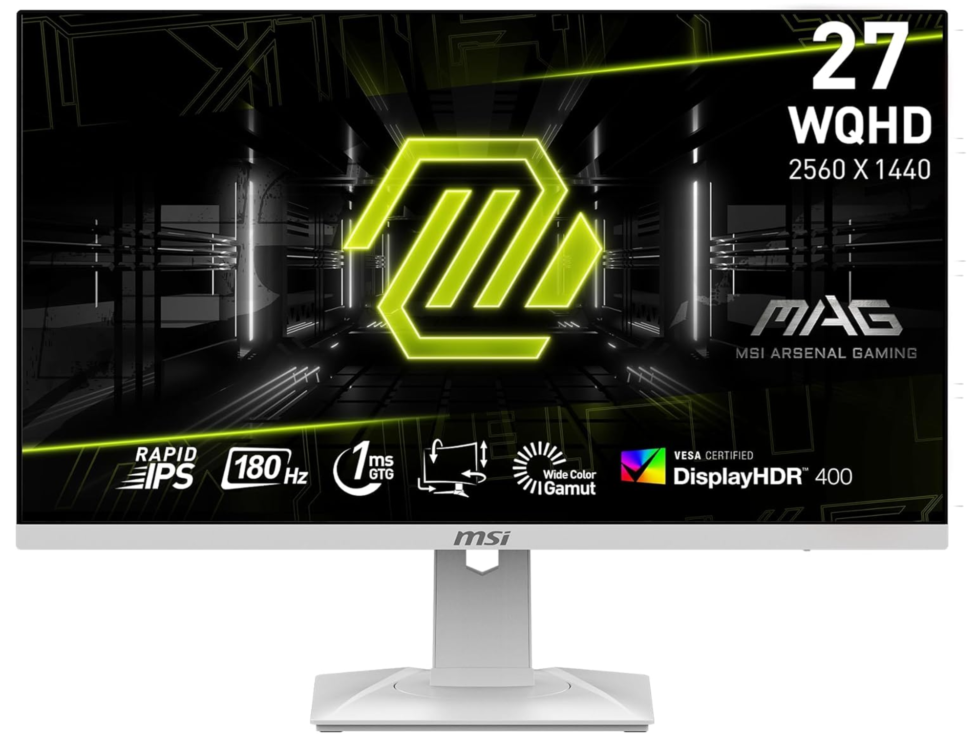 Монитор MSI MAG 274QRFW 27" 16:9 WQHD(2560x1440) Rapid IPS,1ms, 1000:1, 100M:1, 400nit, 178/178, 2xHDMI 2.0b, DP 1.4a, Tilt, Swivel, Height,Pivot,VESA,180Hz,White,1y w-ty (9S6-3CC29H-277)