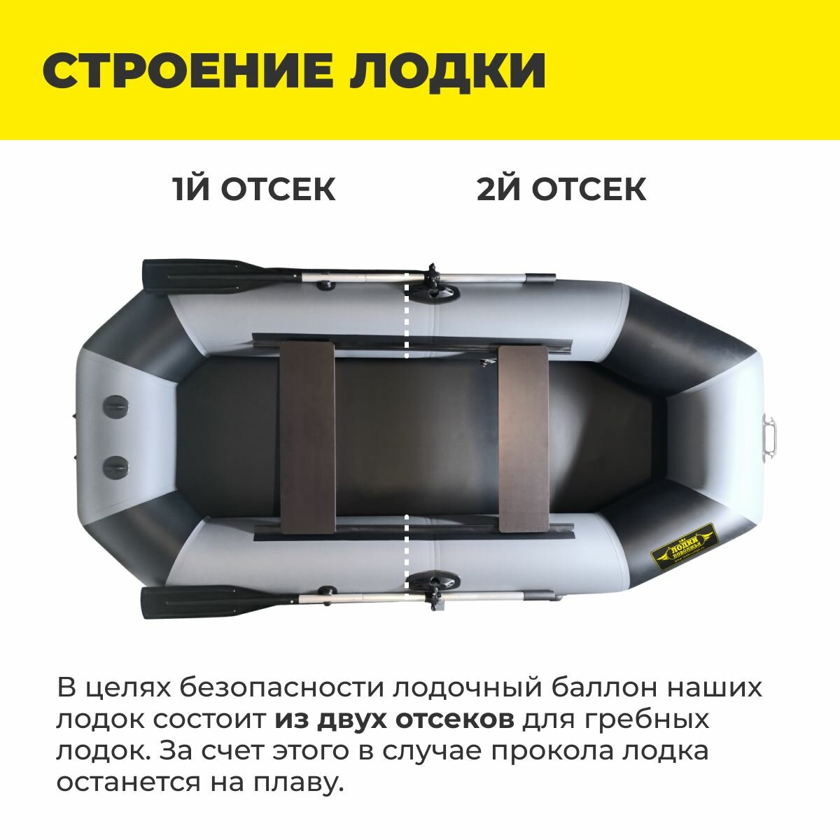Лодка ПВХ под мотор надувная для рыбалки Лодки Поволжья S-265 гребная двухместная, крепления для транца, серо-черная интересное: