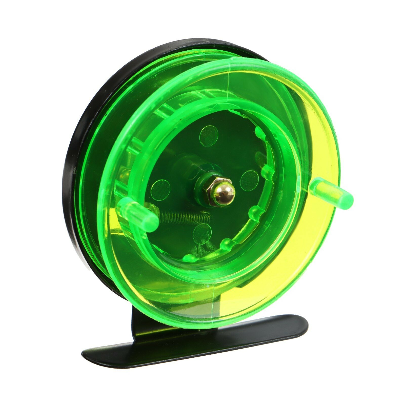 Купить Катушка инерционная, диаметр 6.5 см, металл/пластик, цвет черный, зелёный, 1 шт