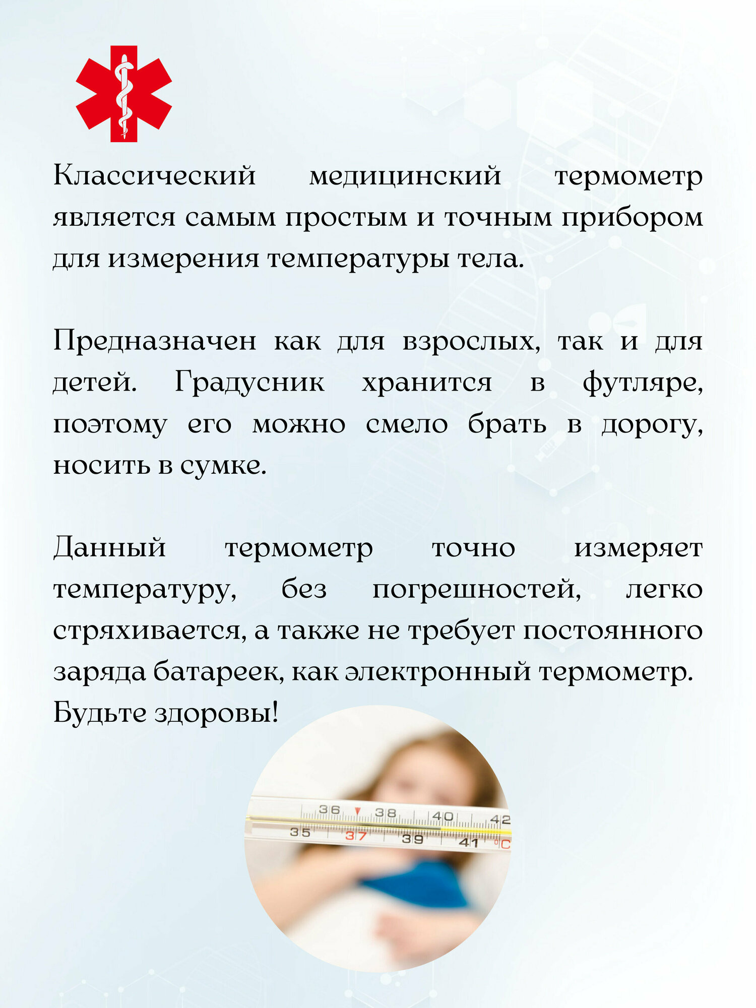 Термометр медицинский MERIDIAN Mercury, футляр в комплекте, прозрачный интересное:
