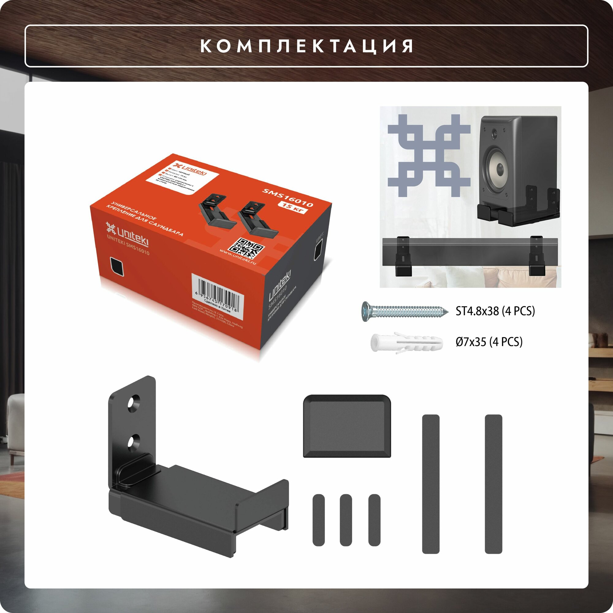 Кронштейн для колонок,саундбара на стену UniTeki SMS16010,черный