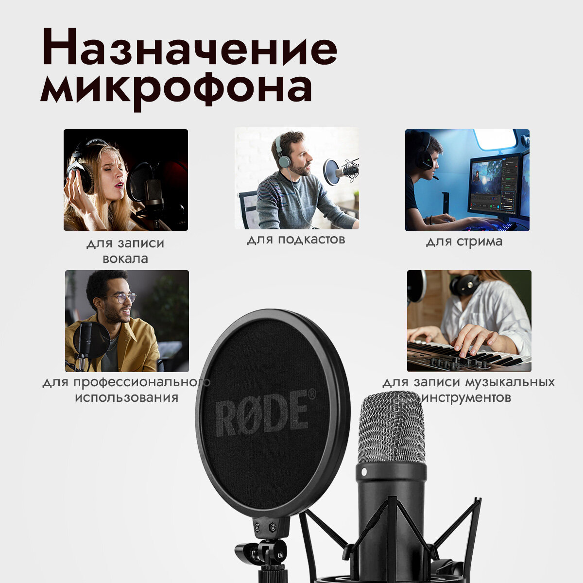 | Назначение | для вокала / для компьютера / для подкастов/радио/телевидения / для стриминга / инструментальный / студийный |