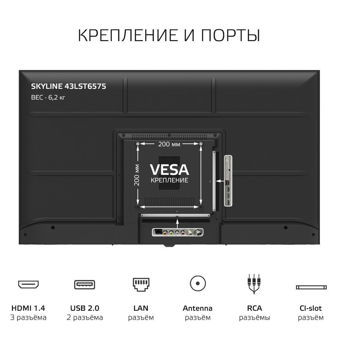 Купить S00003492 / 43" (108 см) LED-телевизор Skyline 43LST6575 черный [Direct LED, FullHD, Wi-Fi, 60 Гц, Y
